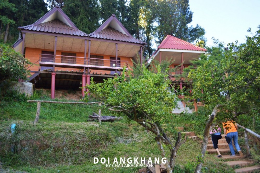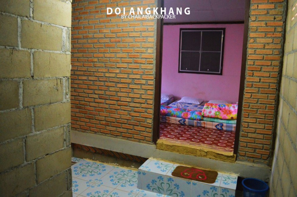 มองออกไป เบื้องหน้าเป็นไร่สตรอเบอร์รี่ และทิวเขา ต้นไม้บนเขา ก็จะเห็นต้นนางพญาเสือโคร่งขึ้นแทรก แซมเป็นสีชมพู เหมือนแต้มสีไว้อยู่บนภูเขาด้วย  แต่… ห้องน้ำ มีอยู่ห้องเดียวเท่านั้น ยังดีที่มีน้ำอุ่น (ระบบใช้แก๊ส) ไว้ให้ ตอนหนาวๆ ก็อาบอุ่นสบายดี มีห้องเดียวมากันเยอะๆ คงต้องจัดคิวเข้าห้องน้ำกันดีๆ ละครับ..
