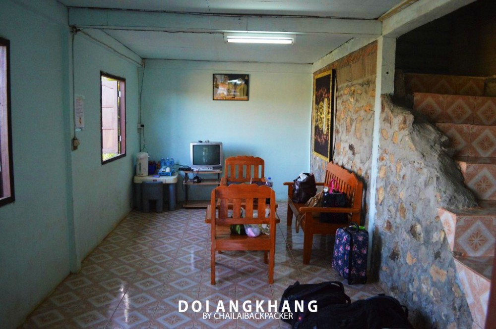 ลองเข้ามาในตัวบ้านครับ เป็นบ้าน 2 ชั้น เดินเข้ามาจะเจอห้องนั่งเล่นก่อนเลย  ซึ่งก็ได้บรรยากาศแบบอยู่บ้านครับ อยู่ง่ายๆ และ ไม่มีเครื่องอำนวยความสะดวกอะไรมากนัก แต่ก็ได้อารมณ์ และ บรรยากาศการพักผ่อนไปอีกแบบ.. ครับ โดยในห้องนั่งเล่นข้างล่างนี้จะมี ทีวี กระติกน้ำร้อน แก้วน้ำ กาแฟ โอวิลติน ไว้ให้ครับ