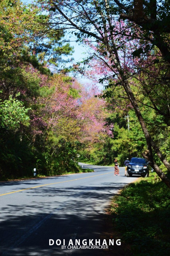 ระหว่างทางสู่ดอยอ่างขาง สองข้างทางก็จะเป็น “เส้นทางสีชมพู” ครับ เพราะเรียงรายไปด้วยต้นนางพญาเสือโคร่งที่ชูช่อ อวดความงามสีชมพูบานสะพรั่ง แต่ดูแล้วก็คล้ายว่าจะถึงเวลาใกล้ร่วงโรยแล้ว เพราะเริ่มมีใบสีเขียว แซมออกมา แล้ว..