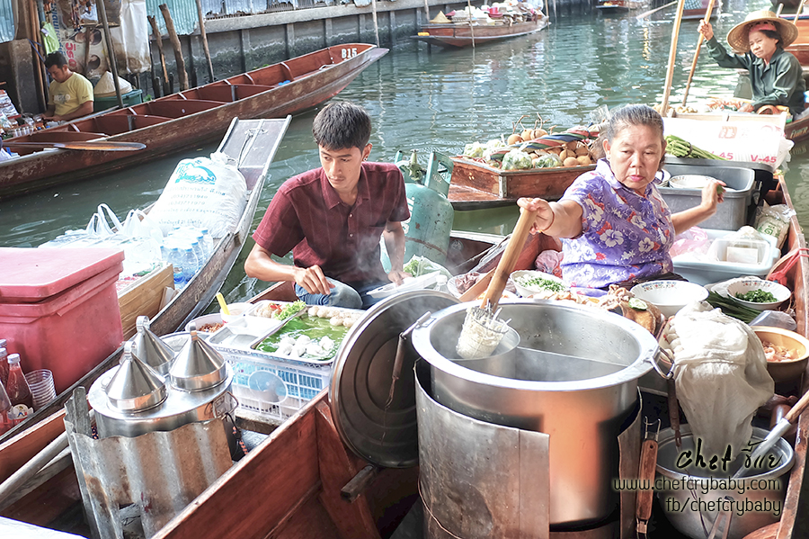 ป้าที่อยู่ในเรือก็ลงมือทำทันที เราก็ขอไปถ่ายรูปเก็บภาพตอนแกทำก๋วยเตี๋ยวซะหน่อย... พร้อมกับสั่งน้ำแดงโซดาจากเรืออีกลำมาทานคู่กัน