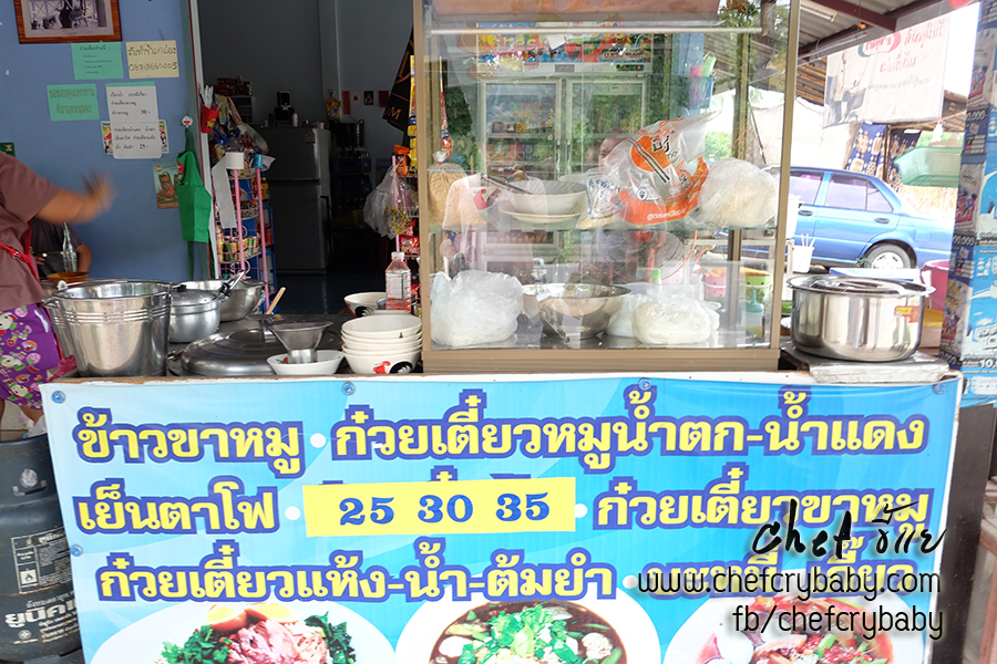 ถึงเวลามื้อเที่ยง หลังจากตากแอร์แต่งรูป ลง face กันเสร็จ... ทีแรกแพลนว่าจะไปทานอีกที่นึง แต่ไปไม่สะดวก ต้องนั่งมอเตอร์ไซต์ไป 8 กิโล... พี่ที่ดูแลที่พักก็แนะนำร้านใกล้ๆนี้ให้ อยู่ใกล้ๆตาลหลวงรีสอร์ท (ที่พัก) เลย เดินออกไปเลี้ยวขวา ข้ามคลองโรงหมูไปก็เจอแล้ว หลังคาสีฟ้าๆ เป็นร้านข้างทางง่ายๆนะ ไม่มีป้ายชื่อ มีแต่ป้ายบอกว่าขายอะไรบ้าง