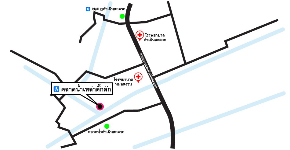 ถือเป็นคุณลักษณะพิเศษอย่างหนึ่งก็ว่าได้ เพราะเมื่อไหร่ที่คนจีนอพยพออกไปตั้งถิ่นฐานยังที่ใด เมื่อนั้น การค้าขายจะต้องเกิดขึ้นตามมาอยู่ร่ำไป และเช่นเดียวกัน ท่ามกลางความโด่งดังของ ตลาดน้ำดำเนินสะดวก ซึ่งหอมหวลจนใครต่อใครต่างมุ่งหน้าเข้ามาชื่นชมสัมผัส และเกือบจะร้อยทั้งร้อยของผู้คนที่ได้มาเยือน ตลาดน้ำดำเนินสะดวก อันมากชื่อแห่งนี้ คงมีน้อยคนที่จะทราบว่า เพียงคุณเดินย้อนขึ้นไปเล็กน้อยก็จะพบกับ ตลาดน้ำแห่งแรกของประเทศไทย ที่มีชื่อว่า ตลาดน้ำเหล่าตั๊กลักบริเวณ ปากคลองลัดพลี ที่เชื่อมกับคลอง ดำเนินสะดวก อันเป็นชุมชนเก่าแก่ของชาวจีนซึ่งค้าขายกันมาหลายชั่วอายุคน