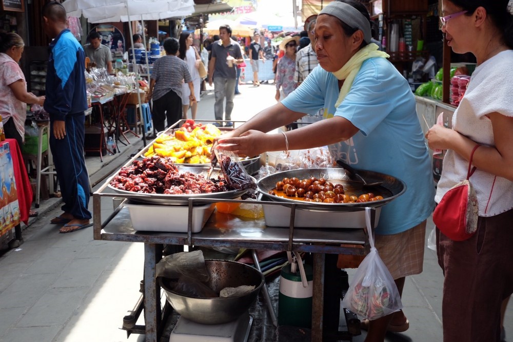 เรามาดูกันว่าที่ตลาดสามชุกแห่งนี้ มีอะไรจำหน่าย น่ากิน น่าสนใจบ้าง