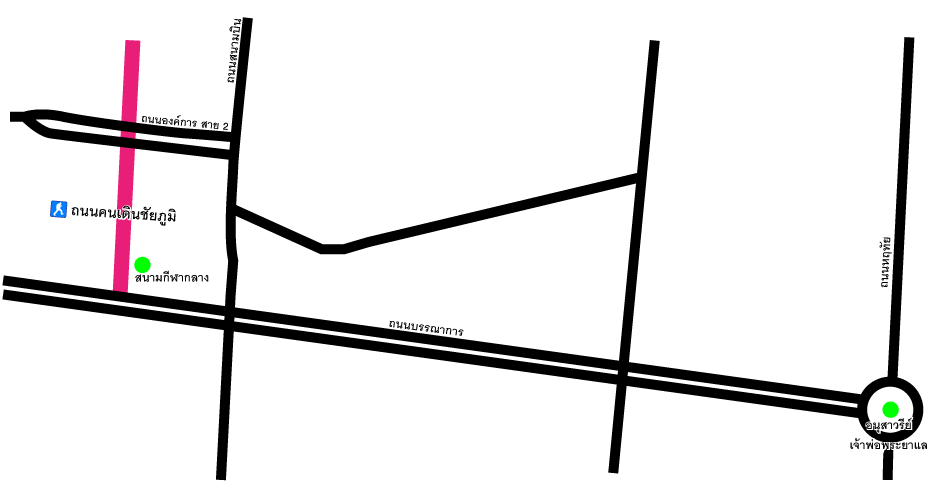 “ถนนคนเดิน” ไม่ว่าไปที่ไหนในประเทศไทยก็มักจะเห็นว่ามีถนนคนเดินเป็นแหล่งท่องเที่ยวที่จัดขึ้นมาเพื่อดึงดูดบรรดาขาช็อปนักเที่ยวทั้งหลาย จนแทบจะเรียกว่าเป็นเทรนด์ที่แต่ละจังหวัดจะต้องเกาะติดให้ทันกระแส ถ้าไม่อยากตกยุคก็ต้องเลือกหาถนนซักสายขึ้นมาจัดถนนคนเดินให้ได้ จะว่าไปถนนคนเดินแต่ละแห่งก็มักจะมีเอกลักษณ์แตกต่างกันออกไปตามท้องถิ่น ซึ่งการมาเที่ยวเมืองชัยภูมิในครั้งนี้ เราก็ไม่ยอมพลาดโอกาส ต้องขอแวะเวียนไปเดินเล่นที่ถนนคนเดินของเมืองชัยภูมิกันซะหน่อย
