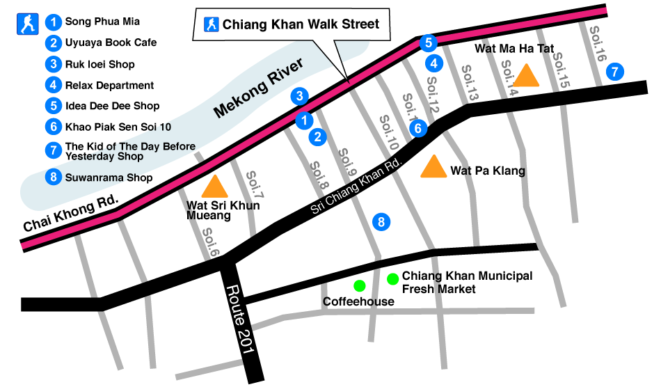 Chai Khong Rd. is the name of a 3-kilometer stretch of road alongside the Mekong River. During weekdays, Chiang Khan is rather unanimated. On weekends however, it’s a completely different story. Chai Khong Rd. becomes the walking street of Chiang Khan, flooded with visitors who come here to relax and have a good evening.