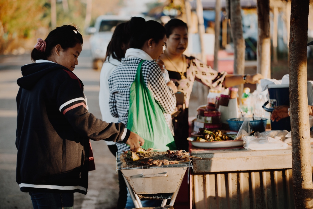 อันที่จริงทะเลบัวแดงของอำเภอกุมภวาปีนั้นสามารถขึ้นเรือได้หลายจุดครับ แต่ท่าเรือบ้านเดียวที่ผมขึ้นจะเป็นท่าเรือหลักและมีระบบบริหารจัดการที่ดีทีเดียว มีที่จอดรถขนาดใหญ่ มีซุ้มขายอาหารเรียงรายให้เลือกทานของร้อนๆ รองท้องก่อนออกเดินทางด้วย … จากที่จอดรถเดินไปนิดเดียวก็ถึงจุดซื้อตั๋วสำหรับขึ้นเรือ