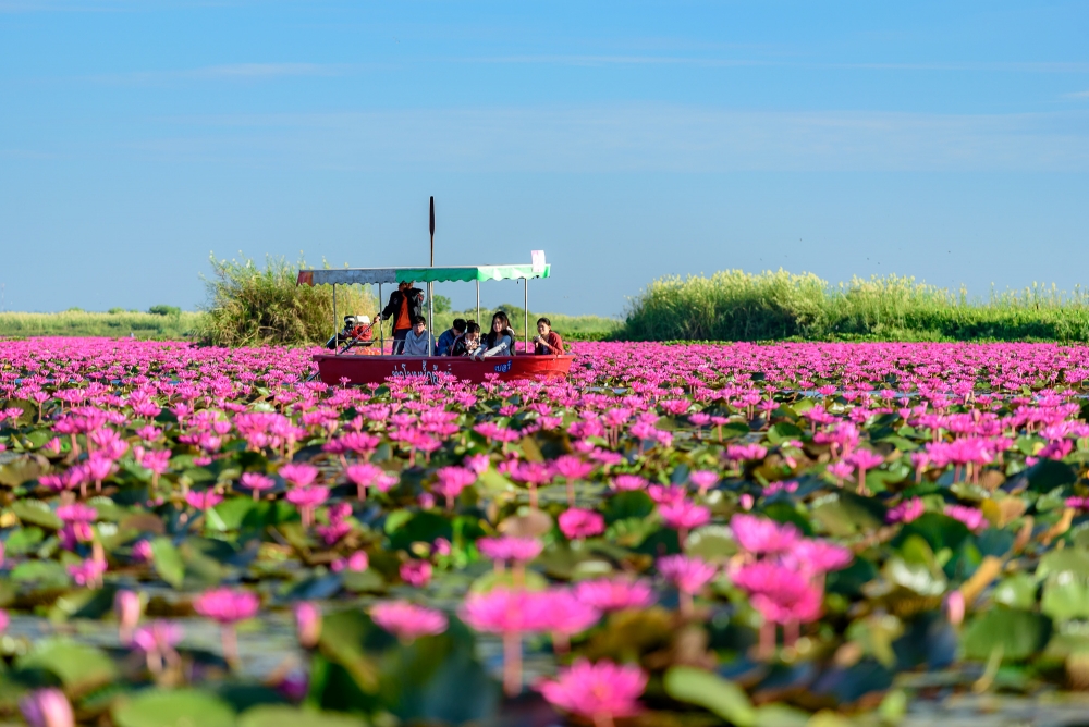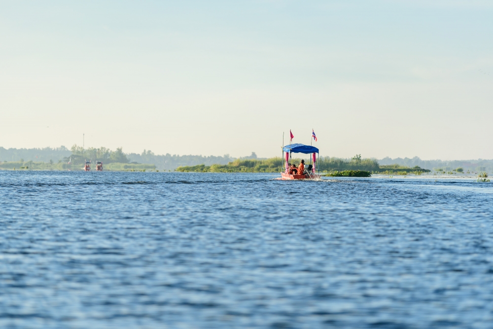 อากาศยามเช้าช่วงปลายเดือนพฤศจิกายน (25 พ.ย. 2560) เย็นสบายมากครับ ราว 17 องศาแต่ไม่ได้รู้สึกว่าหนาว อาจเป็นเพราะมีไออุ่นจากแสงแดดยาวเช้าด้วย ... ทั้งนี้เรือจะเริ่มให้บริการตั้งแต่ 6 โมงเช้า ถ้าใครอยากมาเก็บภาพพระอาทิตย์ขึ้นด้วยก็ควรจะมาถึงตั้งแต่ 6 โมงเลย แต่ถ้าอยากได้บรรยากาศอุ่นๆ เริ่มออกจากท่าราวๆ 6:30 – 7:00 ผมว่ากำลังดี ... จากท่าเรือใช้เวลาแล่นไปยังจุดที่มีดอกบัวหนาแน่นราว 15 นาที ซึ่งจะมีร่องน้ำเล็กๆ ให้เรือแทรกตัวไปท่ามกลางดอกบัวที่กำลังชูช่อเต็มบึงสวยงามมาก เรือแต่ละลำจะหยุดให้เราได้ถ่ายภาพเป็นระยะครับ ซึ่งสามารถบอกคนขับเรือได้เลยว่าอยากได้มุมไหน