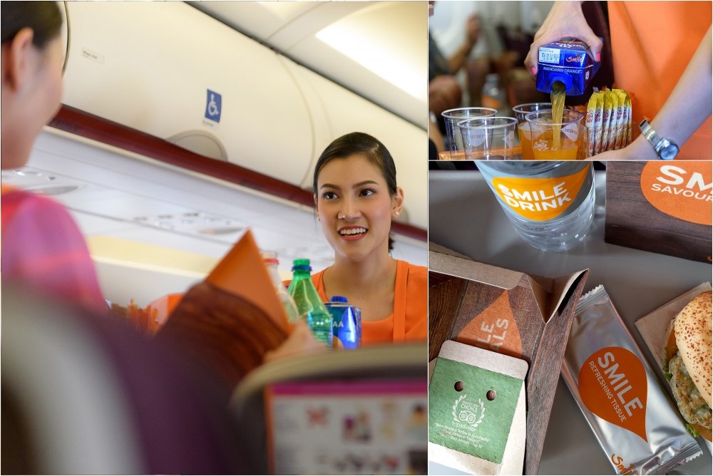 ผมบินกับไทยสมายล์ค่อนข้างบ่อยเลยสังเกตได้อย่างหนึ่งที่รู้สึกว่าเป็นเสน่ห์เฉพาะตัวของสายการบินนี้นั่นคือพนักงานต้อนรับที่ให้บริการด้วยความยิ้มแย้มและสดชื่นอยู่ตลอด … อันที่จริงสายการบินอื่นๆ ของไทยส่วนใหญ่ก็บริการดีนะครับ แต่บางครั้งผมรู้สึกว่าน้องแอร์โฮสเตทเค้าดูล้าๆ เลยทำให้เราพลอยไม่สดชื่นไปด้วย