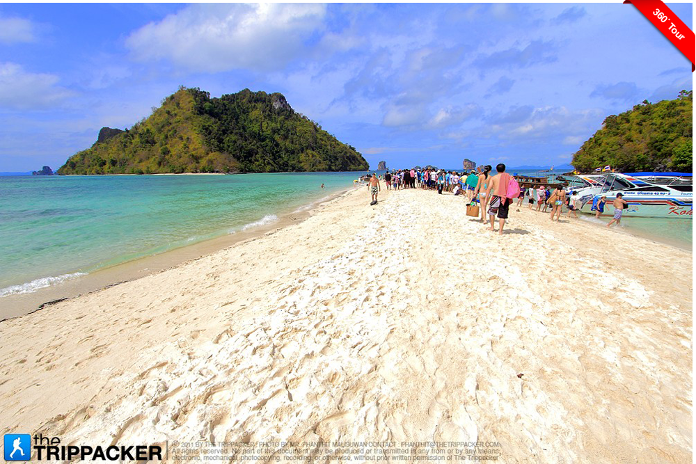 Thalay Wak is a natural attraction in Krabi that has the title “Unseen Thailand”, famous across the world. A natural phenomenon occurs that causes the seas to part. When the tide is low, a Y-shaped sandbank connecting 3 islands appears; Tup Island, Mor Island, and Chicken Island. When the tide rises, the sandbank disappears into the ocean.