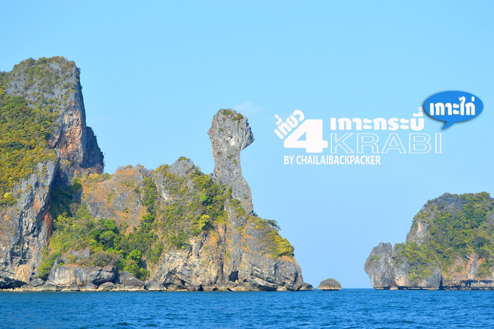 ขึ้นเรือมาต่อกันที่ “เกาะไก่” เกาะหินปูนกลางทะเลที่ถูกอิทธิพลของลม และฝน ธรรมชาติกัดกร่อน จนมองเห็นเป็นเขารูปร่างคล้ายหัวไก่ชูหัวขึ้นมา แปลกตาดี!