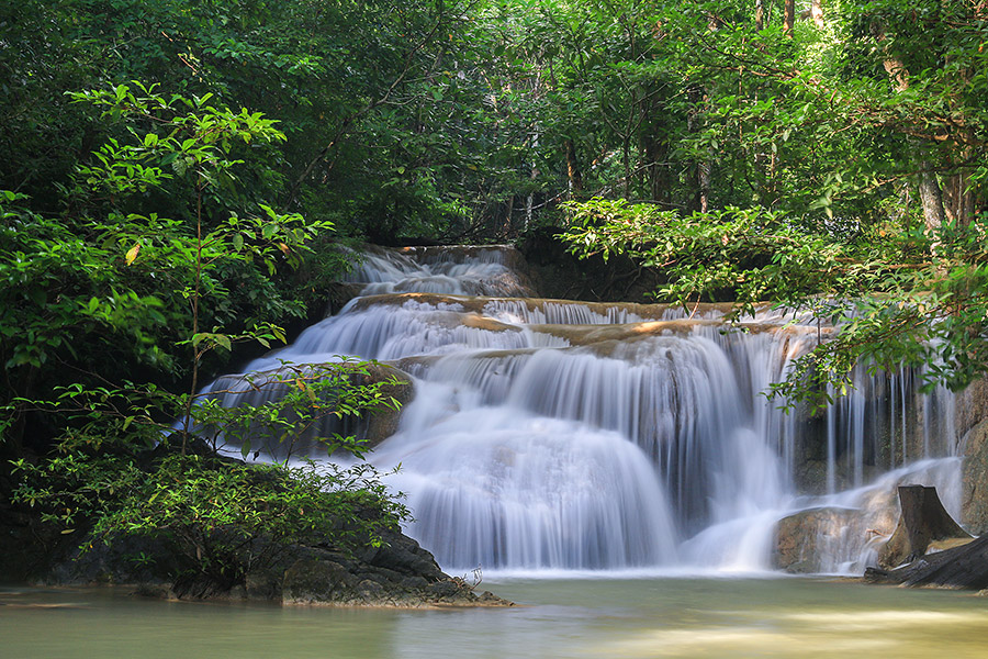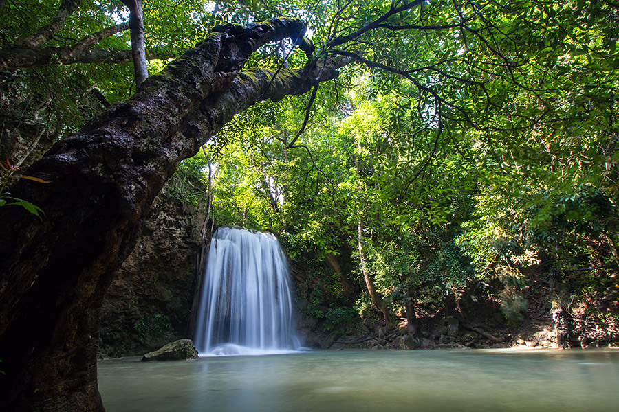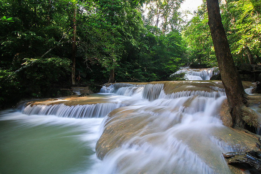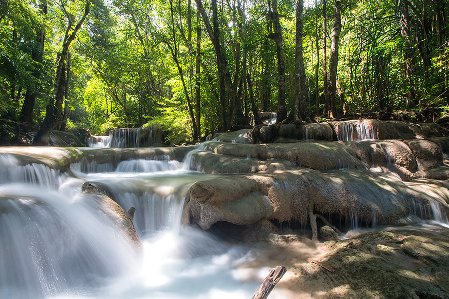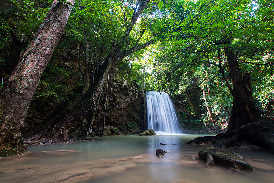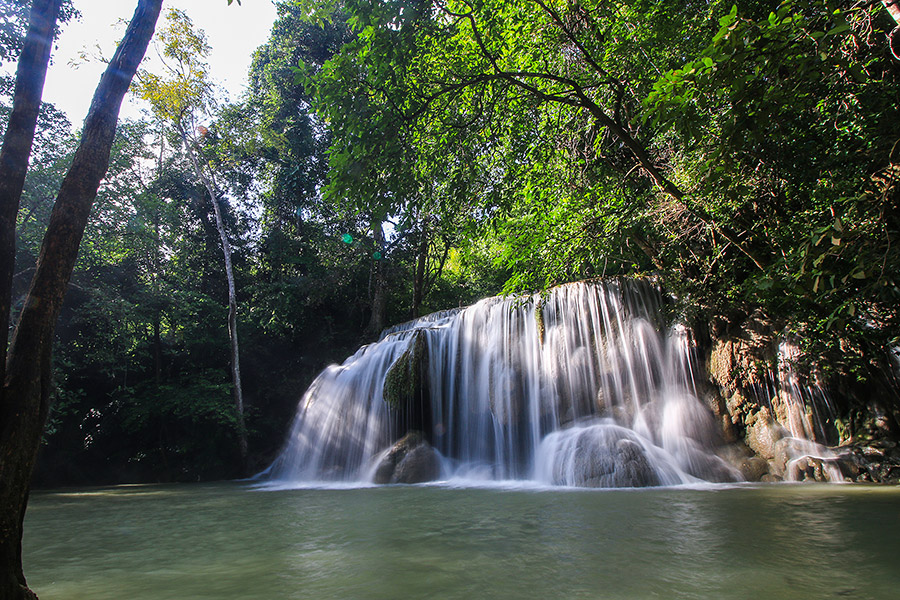 จากจุดตรวจเดินแป๊บเดียวถึงชั้นสาม “ผาน้ำตก” ซึ่งเป็นเหมือนไฮไลท์ของเอราวัณ น้ำตกไหลลงมาจากหน้าผาสูง บ่ายๆ จะมีคนเล่นน้ำตรงนี้ละลานตา ส่วนผมสบายไปเลือกหามุมถ่ายรูปจนพอใจ