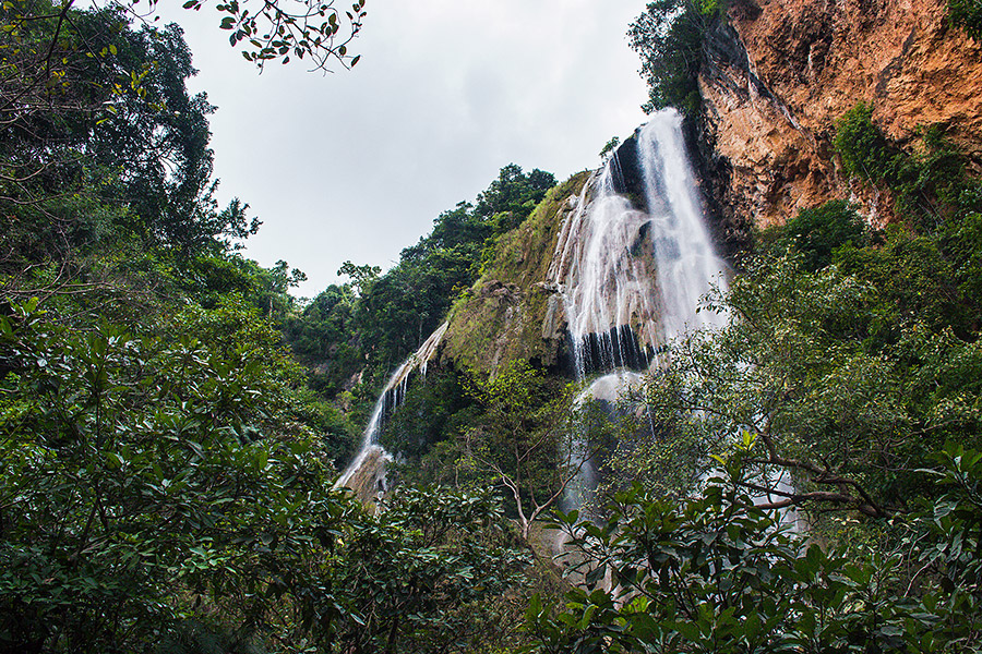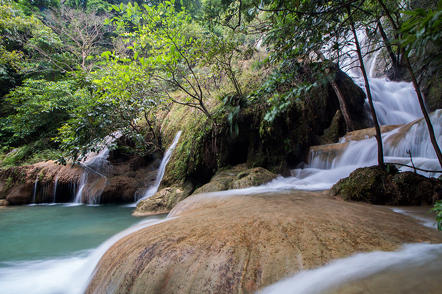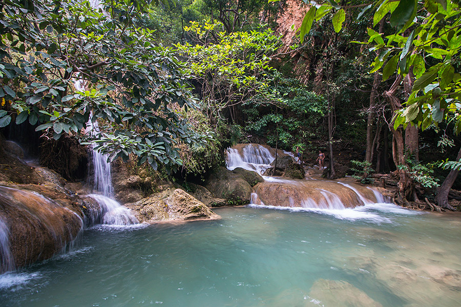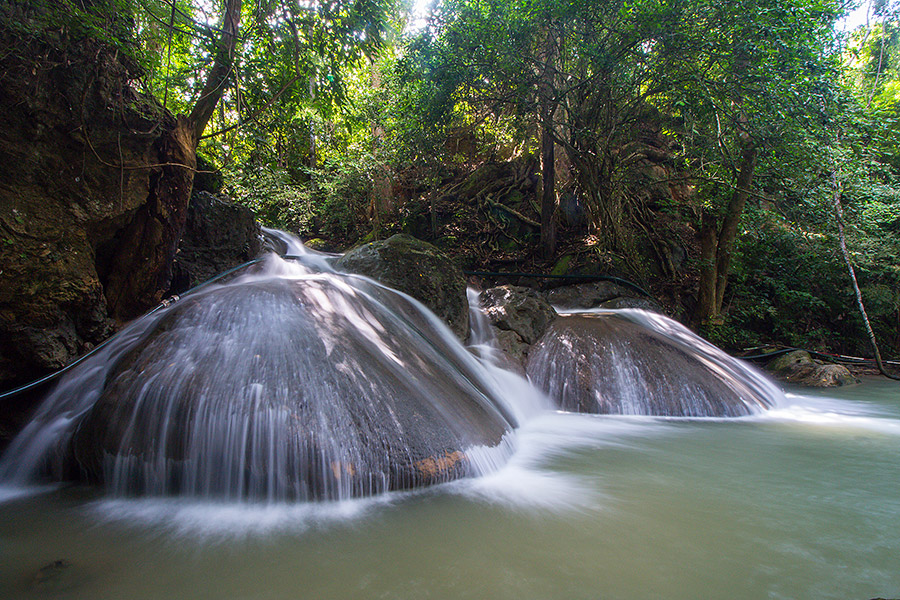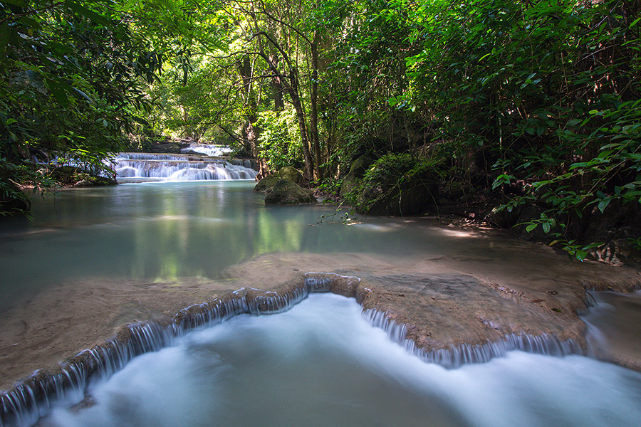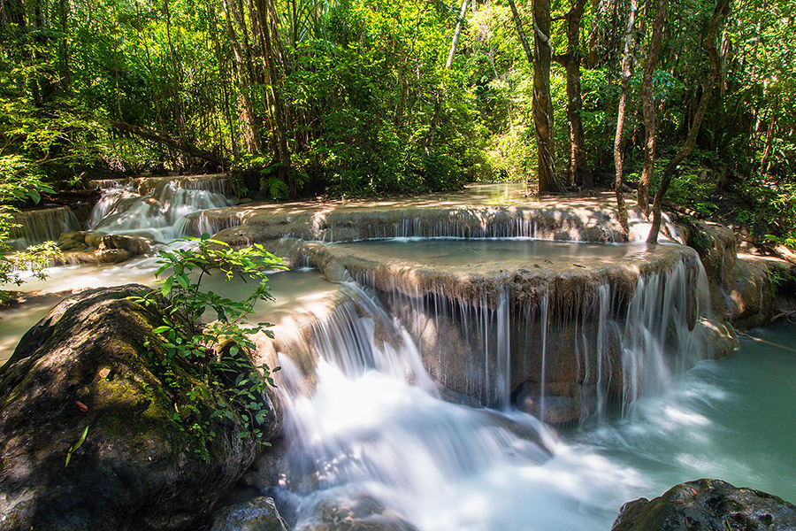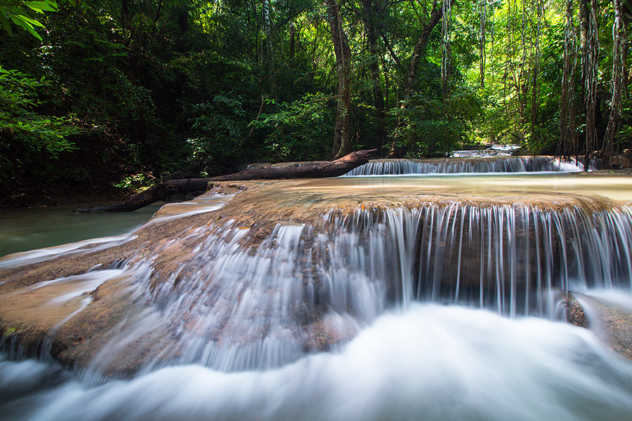 จากจุดตรวจเดินแป๊บเดียวถึงชั้นสาม “ผาน้ำตก” ซึ่งเป็นเหมือนไฮไลท์ของเอราวัณ น้ำตกไหลลงมาจากหน้าผาสูง บ่ายๆ จะมีคนเล่นน้ำตรงนี้ละลานตา ส่วนผมสบายไปเลือกหามุมถ่ายรูปจนพอใจ