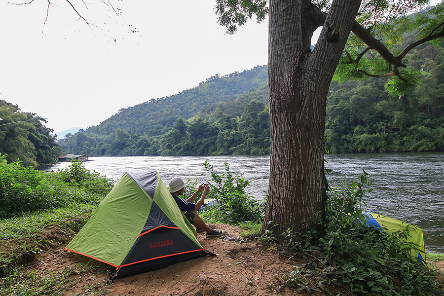 หลังจากนั้นก็เลือกทำเลได้เลย ผมน่ะเจตนาไม่ได้มาเที่ยวน้ำตกหรอก แค่อยากหาที่กางเต็นท์นอนเล่นเฉยๆ ดังนั้นขอวิวสวยๆ ริมแม่น้ำแล้วกัน