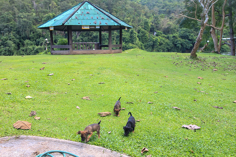 ความจริงหลังจบทริปเอราวัณรอบสี่ก็ไม่คิดจะกลับมาที่นี่ในเวลาอันสั้นอีกแล้วล่ะครับ แต่ผ่านไปแค่ไม่กี่วันกลับอยากจะรู้ใจจะขาดว่าเจ้าลูกหมาสามตัวกินอยู่ดีหรือเปล่า ความความทรงจำสวยงามในทริปนี้ของผมไม่ได้อยู่ที่น้ำตก อยู่ที่ธรรมชาติ แต่อยู่ที่พวกมันเสียอย่างนั้น