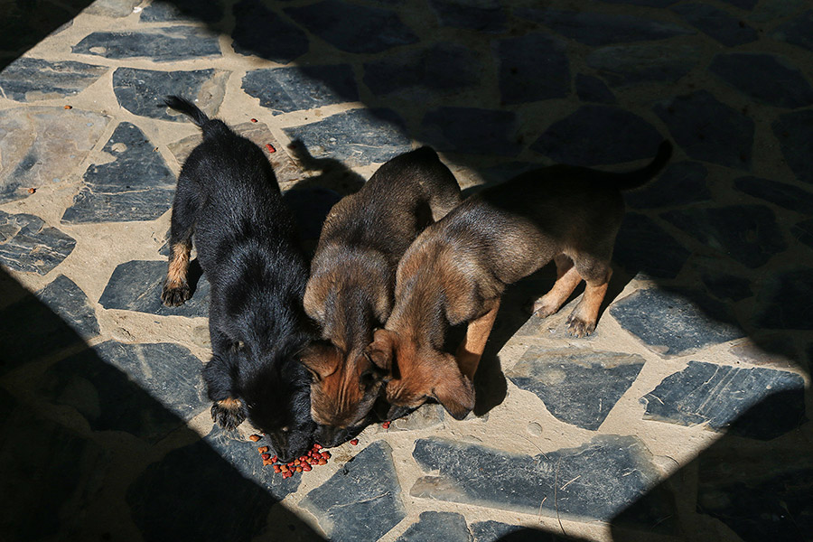 ตอนเย็นแบ่งข้าวตัวเองครึ่งหนึ่งให้พวกมันกิน คราวนี้แม่มันโผล่มาแฮะ ไอ้เราก็ดีใจคิดว่าคงมาเลี้ยงลูกดูแลลูก แต่กลับกลายเป็นว่ามาแย่งข้าวลูกกินซะงั้น โถ... วิถีหมาจรสินะ