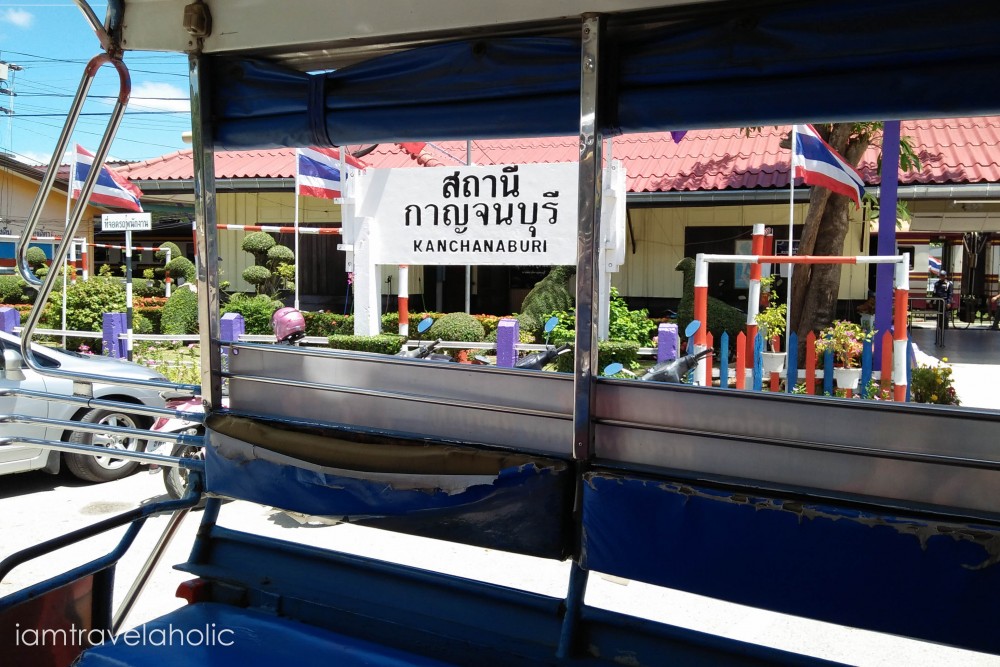 ใช้บริการรถไฟฟรีสายธนบุรี-น้ำตก รถไฟจะออกเวลา 7.50 น. เราจะลงกันที่สถานกาญจนบุรี