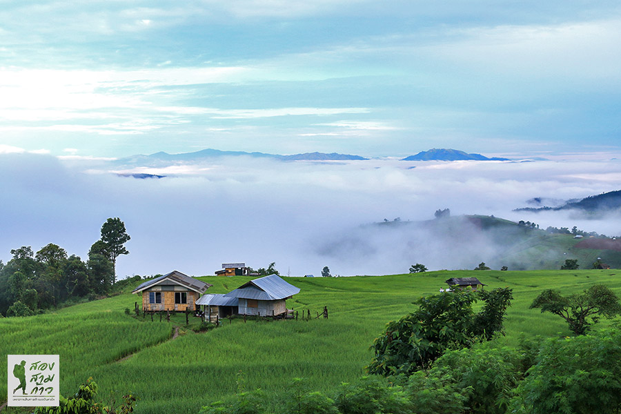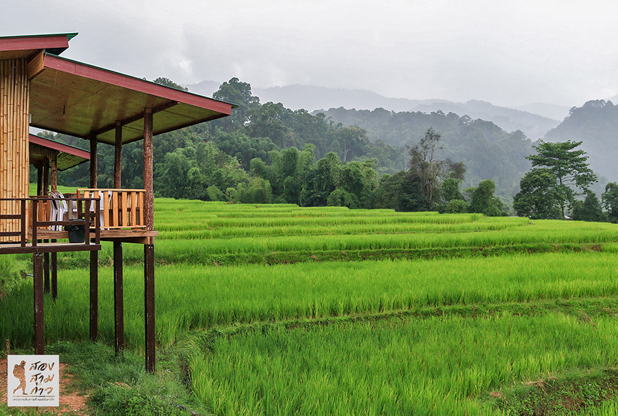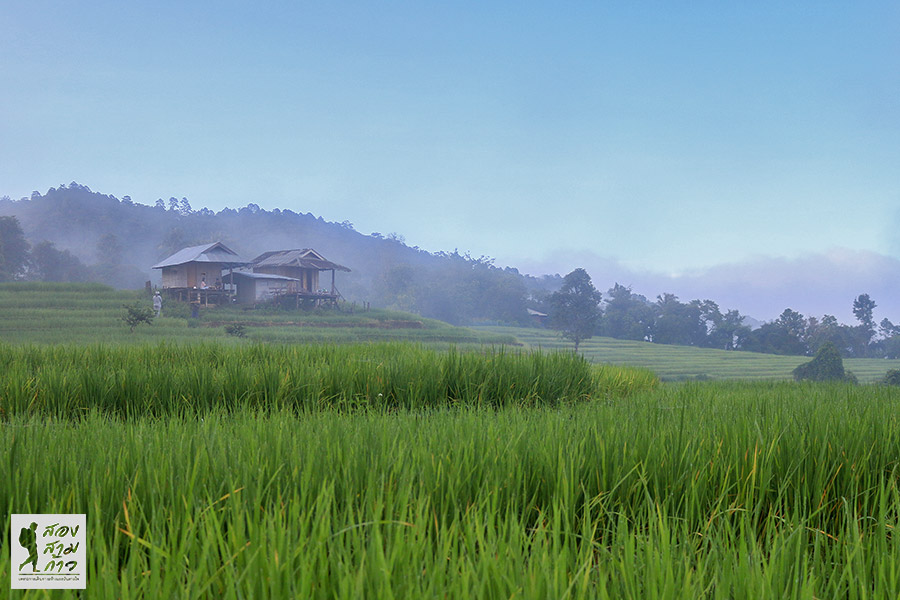 โกวิท กระท่อมปลายนา เป็นที่พักกลางนาขั้นบันไดในหุบเขาครับ พื้นที่ทุ่งนาอาจไม่ถือว่ากว้างมากเมื่อเทียบกับป่าบงเปียง แต่มีดีคือภูเขาล้อมรอบ มันฟินเพราะแบบนี้นี่เอง ที่นี่คิดคนละ 900 บาท หากใครไปเที่ยวทางจะมีรถรับส่งครับ