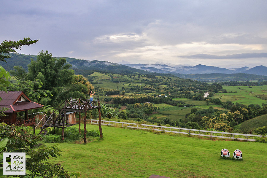 โอ้โห วิวที่มนต์เมืองแจ่มสวยสมราคาคุย ที่พักอยู่บนที่สูงมองเห็นวิวทุ่งนาเขียวขจี บรรยากาศยามเย็นหลังฝนตก สวยสงบ ประทับใจมากครับ