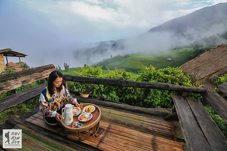 บ้านพักของบ้านระเบียงนาไม่ได้อยู่กลางนาข้าวเหมือนหลายแห่งที่ผ่านมาก่อนหน้านี้ (ดังสุดเห็นจะเป็น มาฉิโพ & ทีฉี่เชอ) แต่ข้อดีคือวิวมุมนี้เห็นดอยอินทนนท์เต็มๆ เห็นทุ่งหญ้าบนกิ่วแม่ปานด้วยครับ