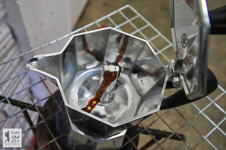 กาแฟเย็นมาตรฐาน เอสเปรสโซ่ ลาเต้ ม็อคค่า 40 บาท ส่วนกาแฟร้อนนอกจากต้มโมกาพอต ยังมีต้มด้วยแอโร่เพรส และดริป มีร้านกาแฟเล็กๆ แบบนี้ในตัวอำเภอเล็กๆ สุดยอดไปเลย เจ้าของร้านเป็นครูหนุ่มสอนอยู่ที่โรงเรียนแม่แจ่มนี่แหละครับ