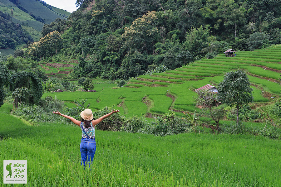 จากบ้านตีนผา อีกแค่ 2 กิโลเมตร ก็ถึงบ้านป่าบงเปียง ทุ่งนาขั้นบันได้ในตำนานมันเป็นแบบนี้นี่เอง ว้าวมากๆ