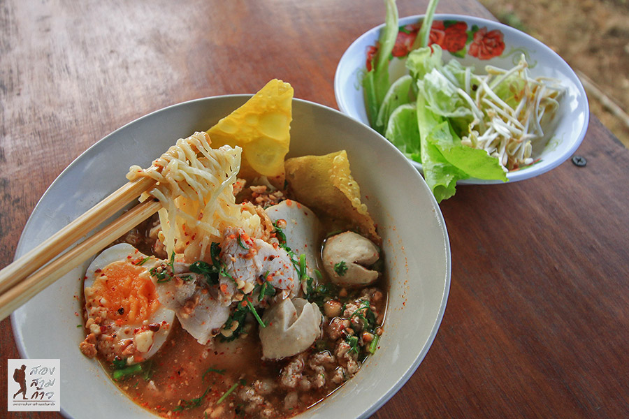 เก้าโมงเช้าเราเก็บของมุ่งเข้าตัวเมืองแม่แจ่ม แวะกินก๋วยเตี๋ยวสักหน่อย เห็นร้านสะอาดสะอ้านดูน่านั่ง และอย่างที่ร้านโฆษณาครับคือยังไม่มีช่องไหนมาสักช่องแต่อร่อยแน่ (ฮา...) ต้มยำเข้มข้น เครื่องแน่น ราคาไม่แพง
