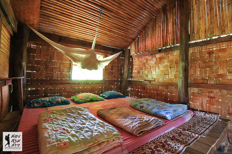 ในบ้านพักแบบเรียบง่ายสุดๆ ราคาเข้าพักคนละ 500 บาท พร้อมอาหารเย็นและเช้า ไฟฟ้าใช้โซลาร์เซล มีให้เราดวงไฟหนึ่งดวงทีระเบียง และอีกดวงในห้องน้ำที่อยู่ข้างบ้าน อยู่กินบนเขาเท่านี้ก็ถือว่าดีมากแล้วล่ะ