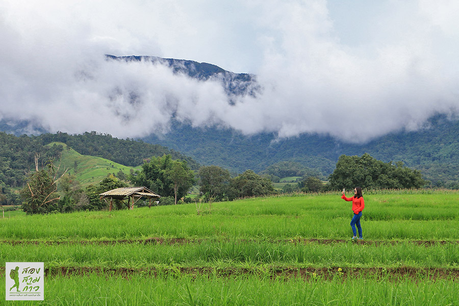 เราไต่ระดับขึ้นไปเรื่อยๆ จนมาเจอทุ่งนาตรงนี้ ไม่รู้จะบรรยายความฟินยังไง จอดถ่ายรูปสักนิด