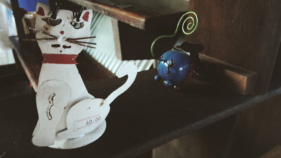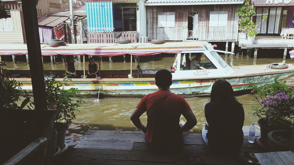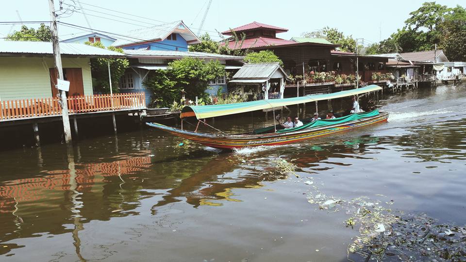 บางร้านก็ไม่เปิด แต่ส่วนใหญ่จะเป็นร้านที่ขายอาหารมากกว่าที่ไม่เปิด บ้านอื่นก็ขายของที่ระลึกหรืองานแฮนด์เมดกันปกตินะ เพราะที่ตั้งขายก็เป็นบริเวณหน้าบ้านของตัวเองอยู่แล้ว แต่เราชอบบรรยากาศแบบนี้มากกว่าเสาร์อาทิตย์ซะอีก นั่นแหละ มันไม่วุ่นวาย                                 พอเลี้ยวเข้ามาในบ้านศิลปิน จะมีนักท่องเที่ยวแค่ไม่กี่คน แต่รู้สึกดีกว่ามาตอนคนเยอะจริงๆ ไม่ต้องแย่งที่นั่งกัน แล้ววันนี้หุ่นละครเล็กออกไปโชว์ข้างนอกพอดี วันนี้คนเลยโล่งๆ ปกติจะมีโชว์ทุกวัน เรื่องโชว์ของหุ่นละครเล็กต้องดูตามแฟนเพจของบ้านศิลปินอีกทีนะคะ หรือไม่ก็โทรมาสอบถามก็ได้ถ้าหากใครตั้งใจที่จะมาดู เผื่อจะได้ไม่เสียเที่ยว             รูปปั้นลุงขาว ลุงแดงนั่งรอคนที่ท่าน้ำนี่ถ้าใครมาแล้วไม่ถ่ายรูปเหมือนมาไม่ถึงนะ เราไปทีไรก็ถ่ายรูปกลับมาทุกครั้งไม่เคยเบื่อ       นอกจากเดินเข้ามาในชุมชนริมคลองบางหลวง ที่แค่ก้าวข้ามคลองมาก็จะพบกับกลิ่นอายของอดีตที่คนเมืองอย่างเรากำลังโหยหา วิถีชีวิตริมน้ำที่ยังมีเรือนักท่องเที่ยวหรือแม้แต่พายเรือมาขายก๋วยเตี๋ยวก็ยังมีอยู่ ผู้เฒ่าผู้แก่ที่ต่างทักทายเราด้วยรอยยิ้ม อาหารการกินที่ราคาเป็นกันเอง คนที่มาเที่ยวที่นี่หากเป็นคนรักความสงบและชอบงานศิลปะจะชอบมากๆและอยากมาบ่อยๆ (เหมือนเรา) มากี่ครั้งก็ไม่เคยเบื่อ เพราะงานศิลปะจะมีเพิ่มขึ้นและเปลี่ยนแปลงไปเรื่อยๆ มีงานของศิลปินมากมายที่มารังสรรค์ไว้ในบ้านไม้เล็กๆหลังนี้ และที่นี่เรียกว่าเป็นไฮท์ไลท์ของชุมชนริมคลองบางหลวงเลยก็ว่าได้