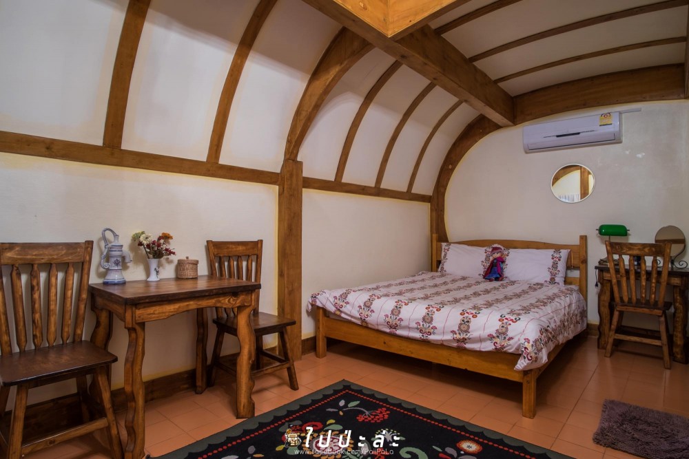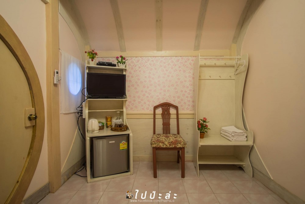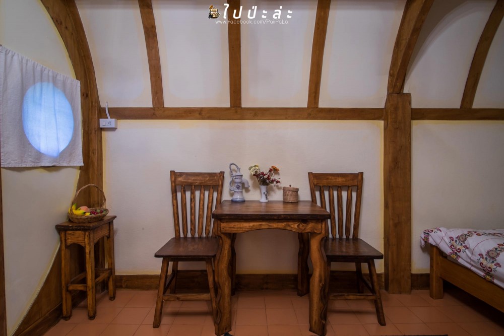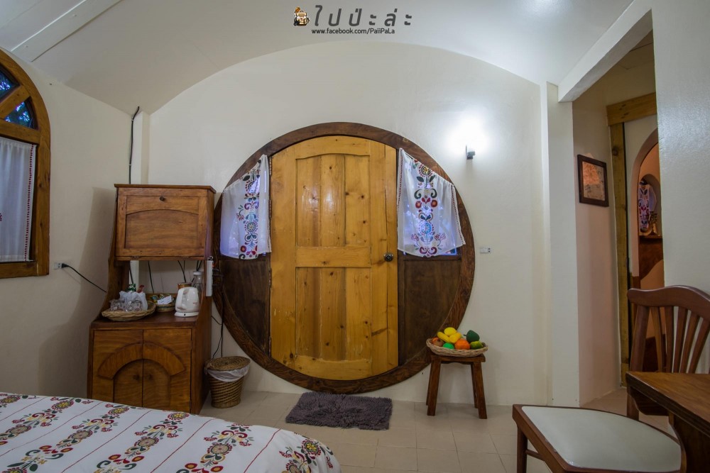 เมื่อเข้าไปถึงที่บ้านสวนน้อยเป็นเหมือนหมู่บ้านเล็ก ๆ พื้นที่ไม่กว้างมากครับ มีบ้านฮ็อบบิทอยู่หลายหลังเลยครับ ดูจากด้านนอกน่ารักสวยงามดีครับ แต่ในใจก็แอบคิดครับว่า ทำไมแลดูหลังเล็กจังเลยจะเข้าไปอยู่ได้ด้วยหรอเดี๋ยวเราพาเข้าไปดูครับว่าข้างในจะเหมือนที่เราคิดหรือเปล่า บ้านมีหลายรูปแบบครับ ตามแต่แรงบันดาลใจของเจ้าของเลย (จากการพูดคุยกับเจ้าของคือ พี่เขาคิดอะไรออก อยากสร้างให้ออกมาแบบไหน ก็จัดการเลยครับ คิดเอง ออกแบบเองลงมือสร้างเอง ตกแต่งเองอีกต่างหาก) ทำให้บ้านแต่ละหลังด้านในจะดูไม่ซ้ำกันเลยครับ