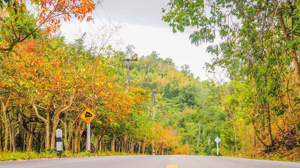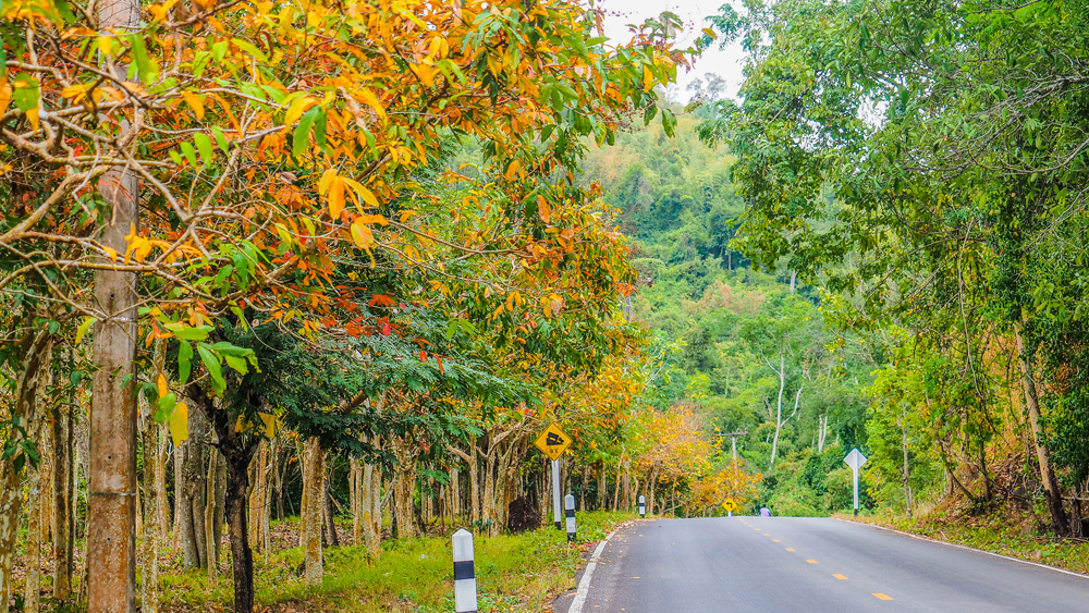 ขับรถไปเรื่อยๆ กลับได้เจอถนนสีส้ม สวยๆ ก่อนจะถึงที่เราจะไปพัก ถนนเส้นนี้อยู่ติดกับชายแดนพม่าคะ