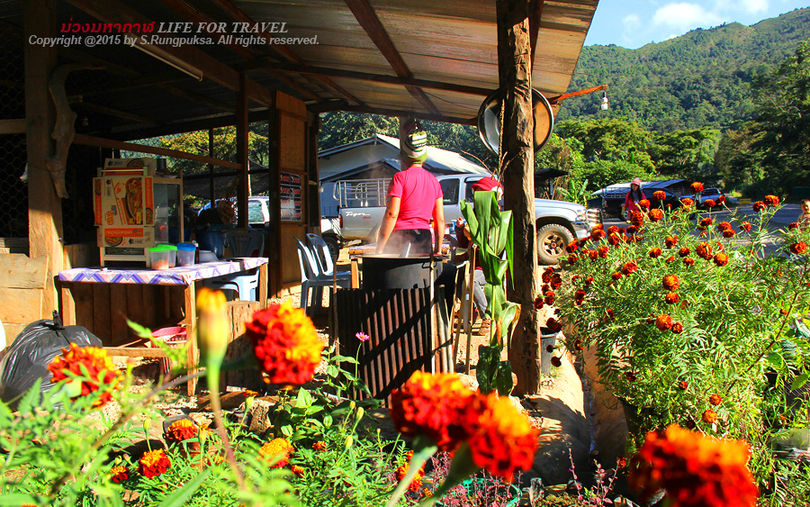 ตรงนี้จะมีบ้านอยู่ 2-3 หลัง และมีร้านขายก๋วยเตี๋ยวแบบบ้านๆ