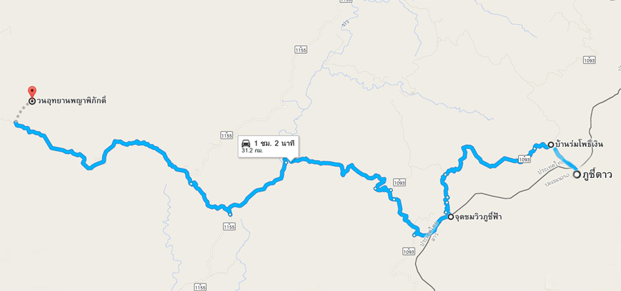 นี่เป็นแผนที่การเดินทางทั้งหมด เริ่มจากภูชี้ฟ้า ภูชี้ดาว และสุดท้ายที่ภูหลงถัง (วนอุทยานพญาพิภักดิ์)