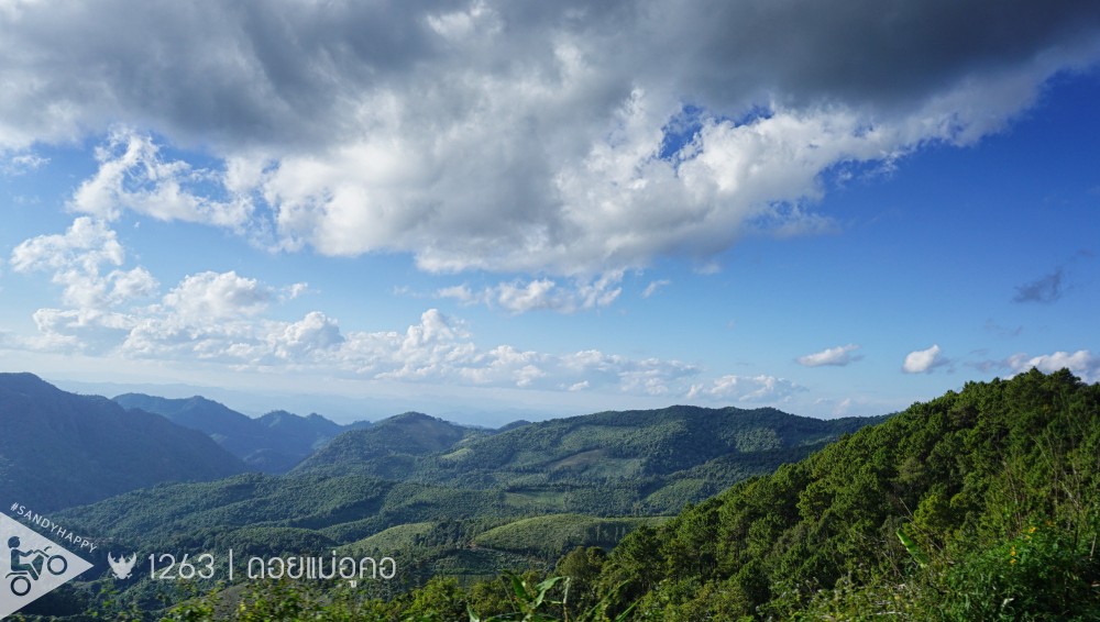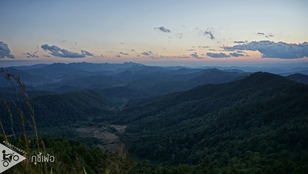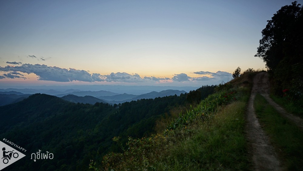 วิวที่ผ่านมาจากแม่โถ นั้นส่วนใหญ่เป็นภูเ ขาหัวโล้นที่ชาวบ้านถางป่ามาทำไร่ข้าวโพดบ้าง ปลูกกะหล่ำบ้าง แต่วิววันนี้ ภูเขาจะเป็นแบบป่า ต้นไม้แน่นๆ สีเขียวเข้ม ซ้อนกันหลายๆชั้นไกลสุดลูกตาสวยแบบมี layer วันนี้ฟ้าและเมฆสวยเป็นใจมาก