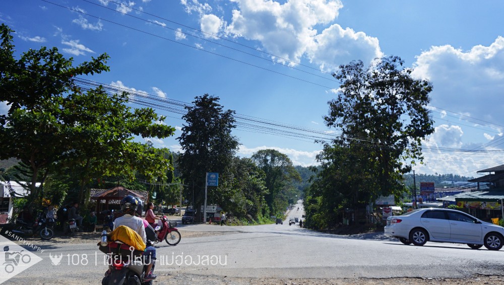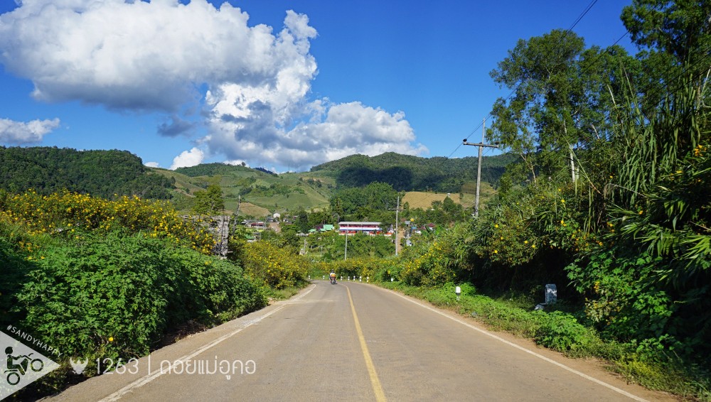 จากบ้านห้วยห้อม เราไปแวะกินข้าวที่ตัวเมือง อำเภอแม่ลาน้อย แล้วก็ยิงยาวไปทางอำเภอขุนยวม ไปดูดอกไม้ แต่ระยะทางที่ต้องเดินทางนั้นค่อนข้างไกล ราวๆ 122 กิโลเมตร ที่สุดแสนจะคดเคี้ยว เป็นร้อยๆโค้ง โค้งแม่ฮ่องสอนขึ้นชื่ออยู่แล้ว โค้งเยอะขี่รถเร็วมากไม่ได้ เลยใช้เวลาเดินทางประมาณ 3 ชั่วโมง