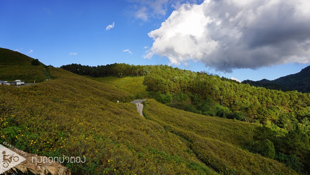 น่าเสียดายที่เรามาตอนดอกบัวตองเริ่มโรยแล้ว เลยไม่ได้เห็นทุ่งเป็นสีเหลืองอร่ามเลย