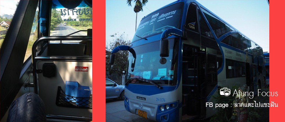 นี่เป็นครั้งแรกเลยค่ะที่ได้เดินทางเพียงลำพัง รู้สึกตื่นเต้นและไม่หวาดหวั่นอันใดเลย เพราะทุกอย่างเราเตรียมไว้เป็นอย่างดีค่ะ ไม่ว่าจะจองรถทัวร์ ที่พัก แพลนว่าจะไปไหนบ้าง เลยรู้สึกว่าไปกับตัวเองปลอดภัยและอุ่นใจ เพราะคิดว่ายังไงก็ไม่น่าจะมีอะไรยากนักสำหรับการไปเชียงคาน ถือว่าง่ายสุดละ ก็เริ่มด้วยการไปขึ้นรถขนส่ง 999 ที่หมอชิตค่ะ รถออกเวลา 7.00 น. ซึ่งก็ออกเลทนิดหน่อย ที่เลือกเดินทางตอนกลางวันเป็นเพราะต้องการชมวิวข้างทางซึ่งก็งดงามตั้งแต่สระบุรี นครราชสีมา ชัยภูมิ ขอนแก่น จนถึง จ.เลย ทุกทางที่ผ่านล้วนสวยงามคนละแบบ ไม่นั่งหลับเลยค่ะ นั่งมองวิวฟังเพลงไปด้วย สุดแสนจะมีความสุข มีอยู่ตอนนึงรถทัวร์วิ่งบนถนนที่มีอุโมงค์ต้นไม้ด้วย โห..บรรยายความงดงามไม่ถูกเลยทีเดียว แถมยังเลือกที่นั่งสบายมากๆ เป็นรถ ป.1 สองชั้นค่ะ เลือกนั่งชั้นบน เบอร์ A1 นั่งหน้าสุด เลยได้เหยียดขาสบาย ไม่เมื่อย จองทั้งขาไปขากลับ เลยได้ราคาลดค่ะคือเที่ยวละ 407 บาทเท่านั้นเอง จากราคาเต็มถ้าจำไม่ผิดน่าจะ 480 เห็นจะได้ ถูกนะ ไม่ต้องนั่ง VIP หรอก ออ..ถ้าใครปรารถนาอยากเดินทางกลางวันเช่นนี้ มันมีแค่รอบเดียวคือ 7.00 น. นอกนั้นมีรอบกลางคืนหมดเลยค่ะ