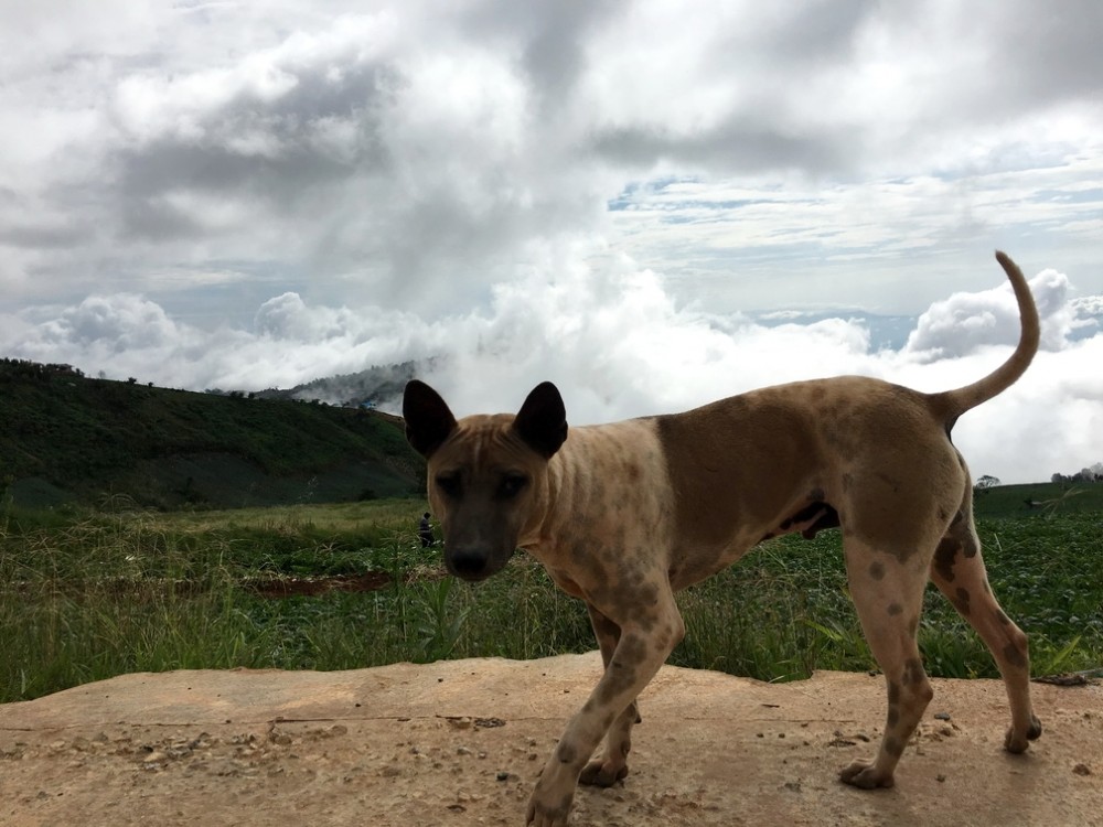 ถึงกับต้องลงมานั่งดูหมอกกับน้องหมา