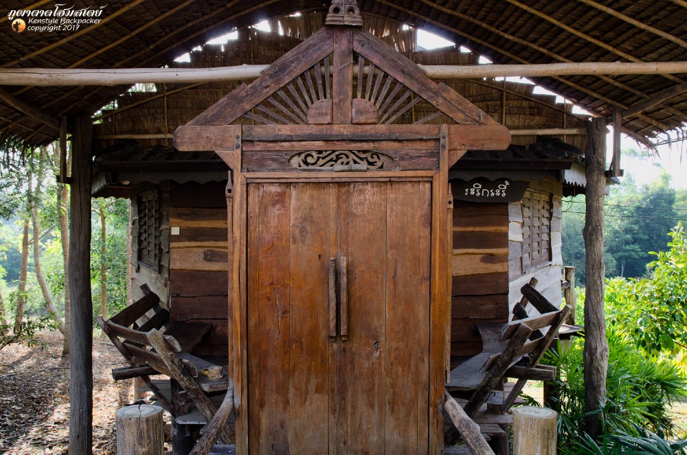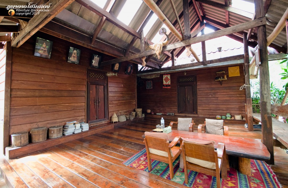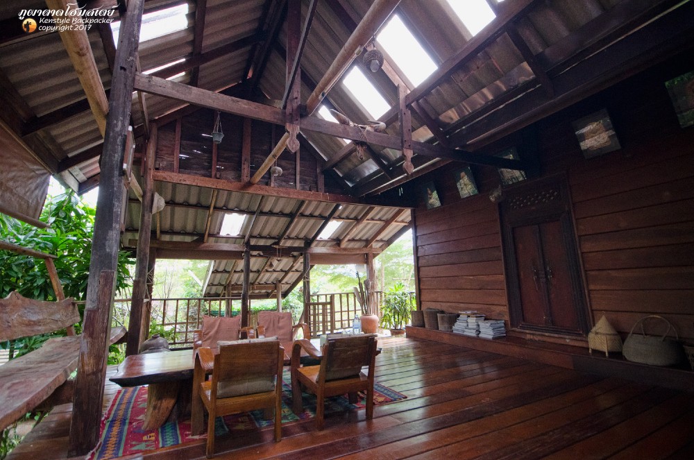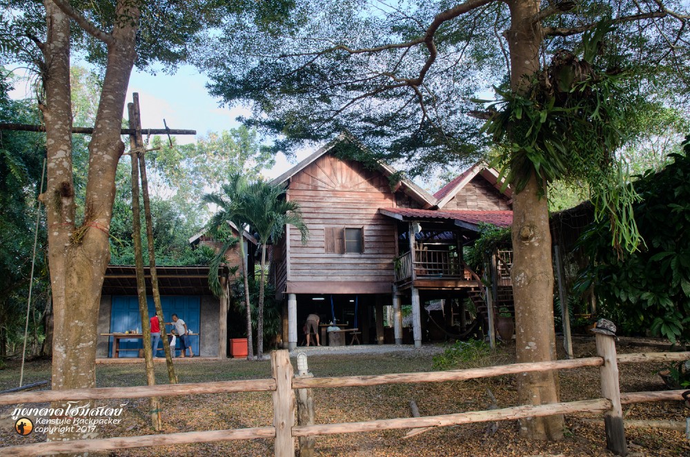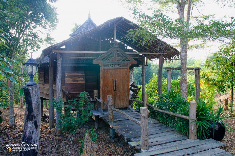 เป็นเรือนไม้หลังแรกที่สร้างขึ้นหลังจากที่ลุงหมึกได้เข้ามาซื้อที่ทำสวนบริเวณนีเมื่อปี 45 และได้ใช้เป็นที่อยู่อาศัยมาตลอด สไตล์ของตัวบ้านเป็นแนวบ้านทรงไทย แต่ดูเหมือนเป็นไทยประยุกต์ หน้าจั่วจะเป็นแบบทางเหนือแต่มีนอกชานเหมือนบ้านภาคกลาง บานประตูเหมือนบ้านเก่ายุคกรุงศรี ห้องน้ำเหมือนรีสอร์ทสไตล์บาหลี ของประดับตกแต่งบ้างก็เป็นของเก่าของโบราณ บ้างก็มามาจากหลายส่วนของมุมโลก นอกจากนี้พื้นที่หน้าบ้านยังเป็นลานโล่งๆไว้ทำกิจกรรม camping ได้อีก มีต้นหูกระจงต้นใหญ่แผ่กิ่งก้านสาขาให้ร่มเงา และชิงช้าแนวชาวเขา ไว้เป็นพร็อพเก๋ๆไว้ถ่ายภาพ หรือเล่นดล้ชิงช้าก็ได้