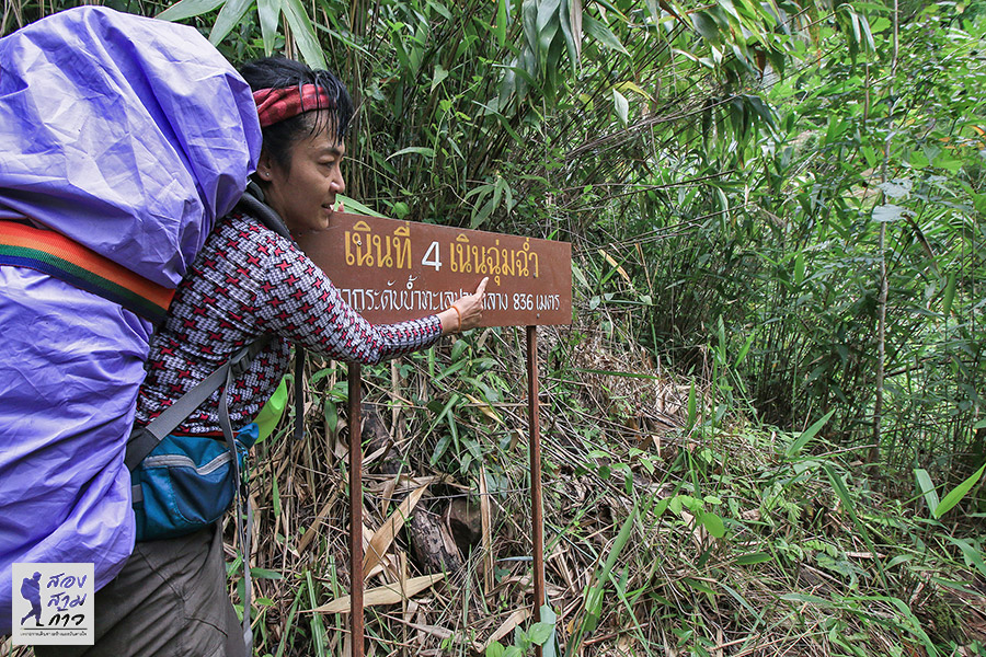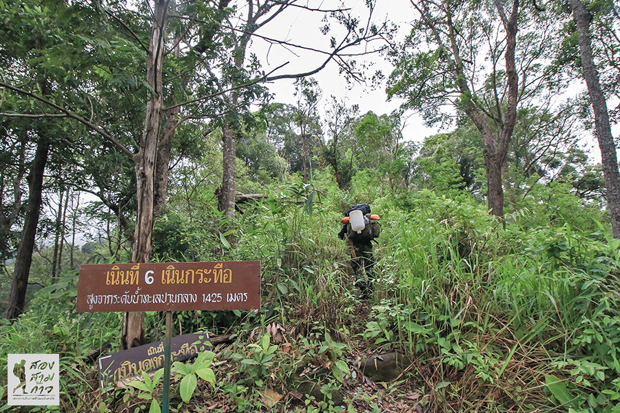 - เส้นทางเดินจากหน่วยฯ ถึงยอดประมาณ 13 กิโลเมตร วันแรก 8 กิโลเมตร วันที่สอง 5 กิโลเมตร