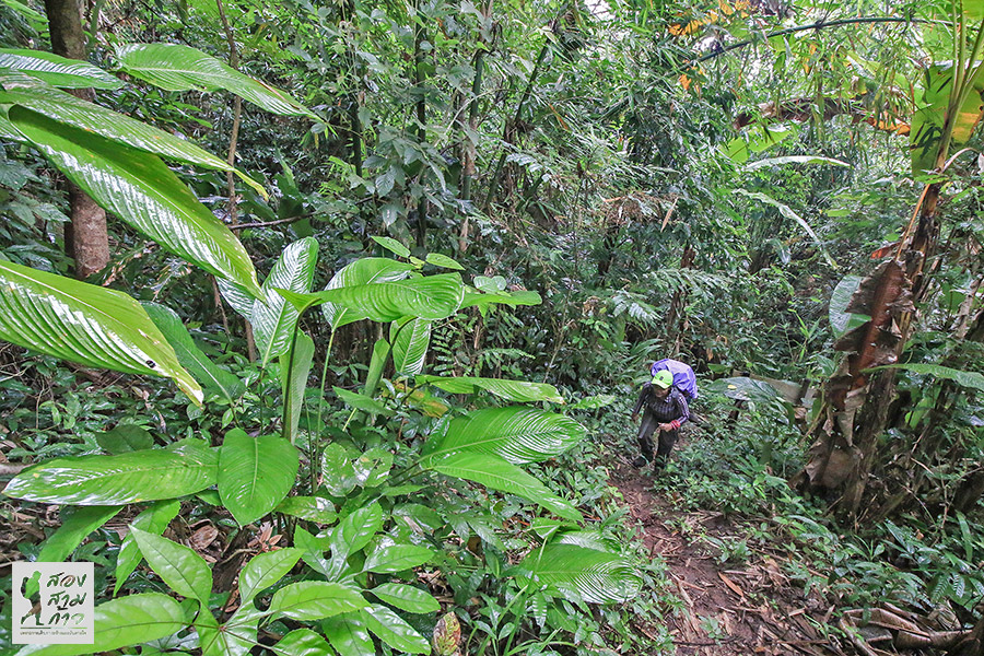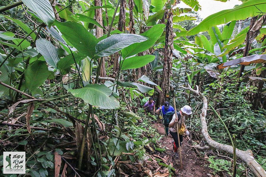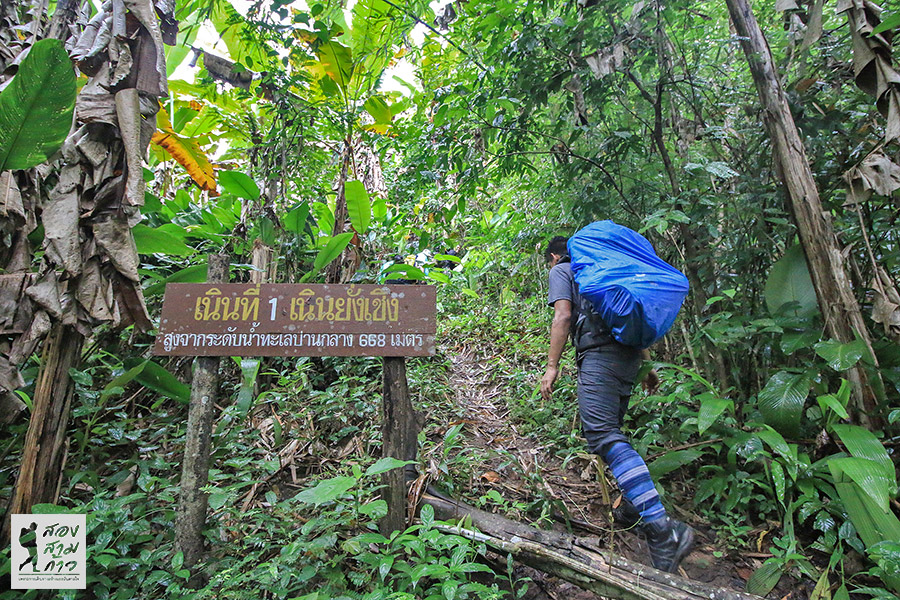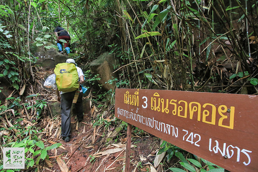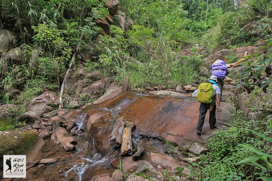 อย่างที่บอกว่าช่วง 2 กิโลเมตรแรกเป็นทางเดินเลาะลำธารน้ำตกคลองตรอนไปเรื่อยๆ ทางค่อนข้างราบเดินไม่ยาก มีเนินไม่ชันมากบางช่วง แต่ลูกหาบบอกว่า 2 กิโลเมตรนี้ถือเป็นของแถมเท่านั้น เจ้าหน้าที่จึงอธิบายเพิ่มว่าเมื่อก่อนเส้นทางตรงนี้เป็นถนนรถกระบะเข้าได้จนถึงที่ทำการฯ เดิม แต่หลังจากเหตุการณ์น้ำป่าไหลหลากครั้งใหญ่ปี 2549 อาคารที่ทำการฯ ก็เสียหาย ถนนทางเข้าก็หาบวับ จึงต้องย้ายไปสร้างอาคารกันใหม่ด้านนอกตามที่เห็นทุกวันนี้
