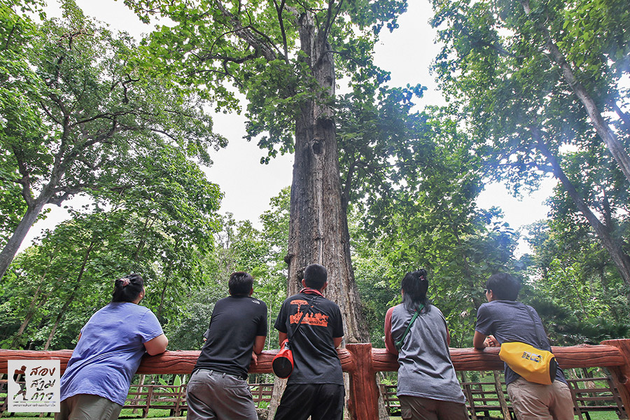 แต่ทริปของเรายังไม่จบเท่านี้ครับมีแถมนิดหน่อย รถที่พาเราไปส่ง บขส. (ซึ่งจริงๆ คือรถที่ควรไปรับเราวันแรกด้วย) พาแวะชมต้นสักใหญ่ตรงที่ทำการอุทยานฯ ซึ่งอยู่ระหว่างทาง เป็นต้นสักใหญ่สุดในโลกที่ยังเหลืออยู่ อายุมากกว่าพันปี จัดการถ่ายภาพเป็นที่ระลึกสักหน่อย