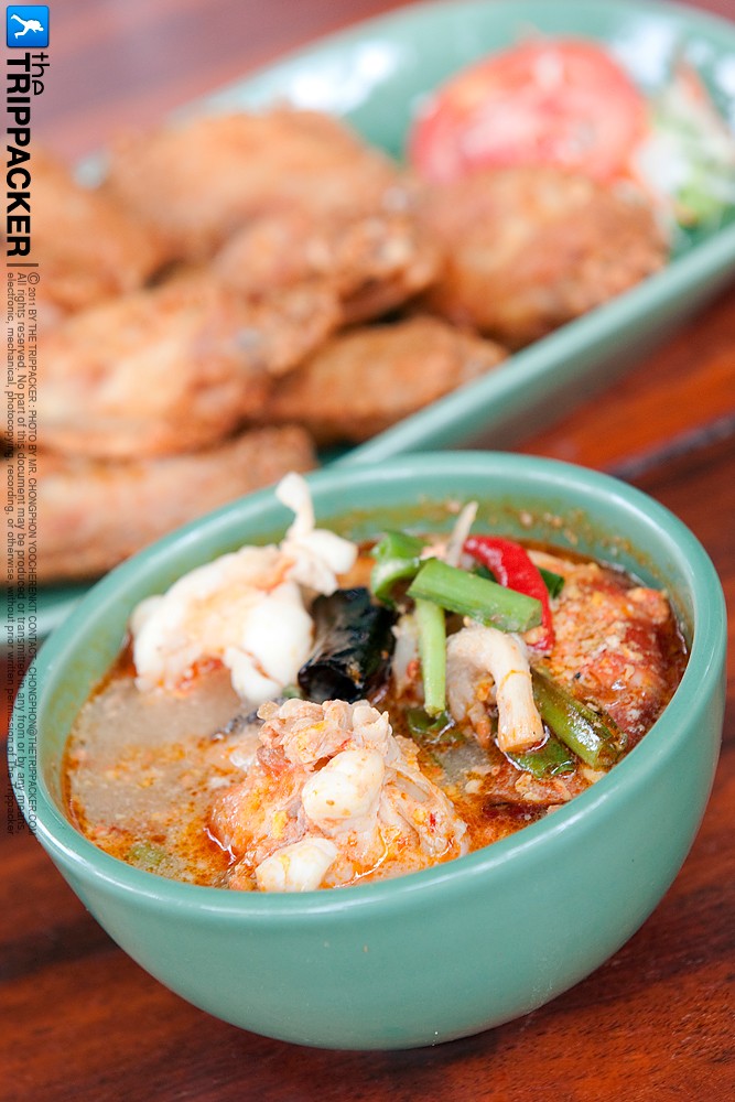 หลังจากที่แวะเที่ยวในจังหวัดอ่างทองมาพอสมควรแล้ว ทีนี้ก็ได้เวลามองหาอาหารอร่อยๆ มาเพิ่มพลังที่เสียไปกันซะหน่อย ไม่ห่างจากวัดม่วงเท่าไรนักเรามุ่งหน้าไปทางตลาดวิเศษชัยชาญ เพื่อตามหาจุดหมายความอร่อยของเราในครั้งนี้ ซึ่งเป็นร้านอาหารไทยบรรยากาศดีตั้งอยู่ริมแม่น้ำน้อย ที่สำคัญเรื่องรสชาติของอาหารนั้นได้รับการร่ำลือกันปากต่อปากว่าเด็ดสาระตี่ ดังนั้นเราจึงไม่มีทางยอมพลาดโอกาสแน่นอน