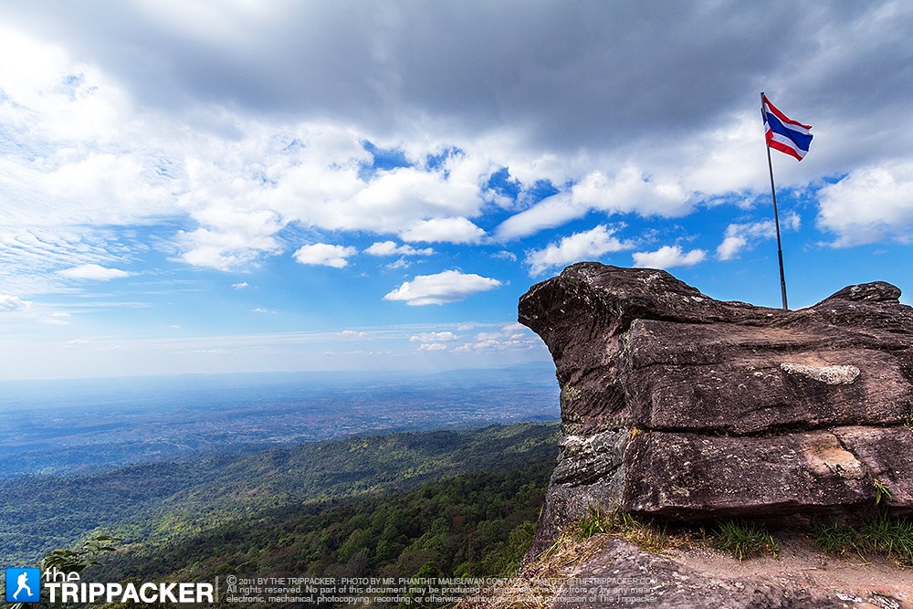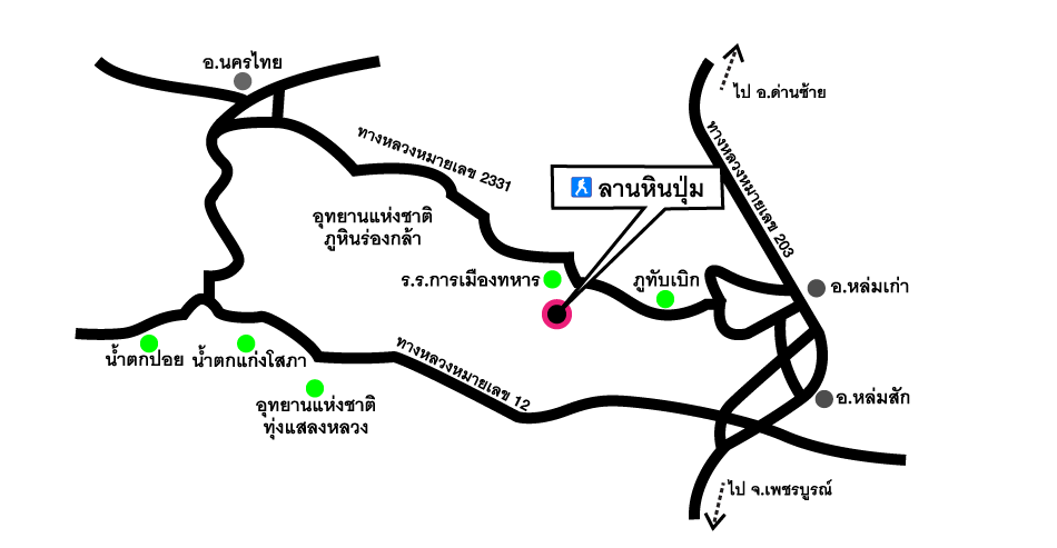 แห่งชาติภูหินล่องกล้า กินพื้นที่คาบเกี่ยว 3 จังหวัดได้แก่ พิษณุโลก เพชรบูรณ์ และ เลย ซึ่งนอกจากสภาพภูมิประเทศที่เป็นภูเขาสลับซับซ้อน มีผืนป่าที่อุดมสมบูรณ์แล้ว ยังมีความมหัศจรรย์ทางธรณีวิทยาที่เกิดจากการเคลื่อนและยกตัวของแผ่นเปลือกโลก ทำให้เกิด “ลานหินปุ่ม” เป็นลานกว้างโดยมีหินขึ้นตะปุ่มตะป่ำกระจายอยู่เต็มลาน หินที่ว่านี้มีลักษณะเป็นเสาหินกลมมนเตี้ยๆเรียงกันเป็นแถวอย่างน่าดู โดยปุ่มหินดังกล่าวมีความสูงเพียง15 เซนติเมตร และมีเส้นผ่าศูนย์กลางประมาณ 30 เซนติเมตร และด้วยความที่ลานหินปุ่มนี้ตั้งอยู่ทางด้านทิศตะวันตกของอุทยานแห่งชาติฯ จึงนับเป็นจุดชมวิวพระอาทิตย์ตกที่สวยงามมากแห่งหนึ่ง ถัดจากลานหินปุ่มนั้น เราเดินต่อมาอีกประมาณ 500 เมตร ก็จะพบกับ “ผาชูธง” สถานที่ที่พรรคคอมมิวนิสต์ในอดีตใช้ในการชูธงฆ้อนเคียวผืนสีแดง ยามที่รบชนะฝ่ายรัฐบาลเป็นเหมือนการประกาศให้ผู้ร่วมอุดมการณ์เดียวกันมีขวัญกำลังใจเพิ่มขึ้น บริเวณนี้เป็นหน้าผาสูง สามารถมองเห็นวิวทิวทัศน์โดยรอบแบบ 360 องศาแต่การขึ้นไปบริเวณผาชูธงนี้ควรใช้ความระมัดระวังด้วย เนื่องจากเป็นพื้นที่ค่อนข้างแคบ