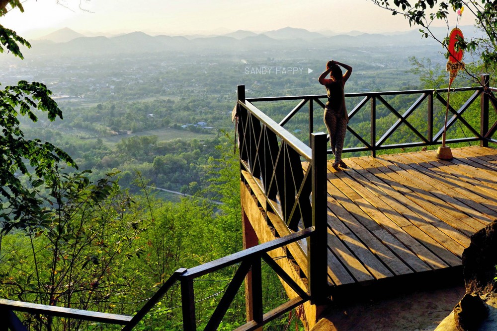 มาถึงจุดชมวิวตรงถ้ำพระแล้ว แดดเฉียงมากแล้วใกล้จะตกเต็มที เราแวะไหว้พระ และดูพระอาทิตย์ตกตรงนี้แทนค่ะ คนไม่มีเพราะมันไม่ใช่จุดสูงสุด แต่ก็สวยนะ
