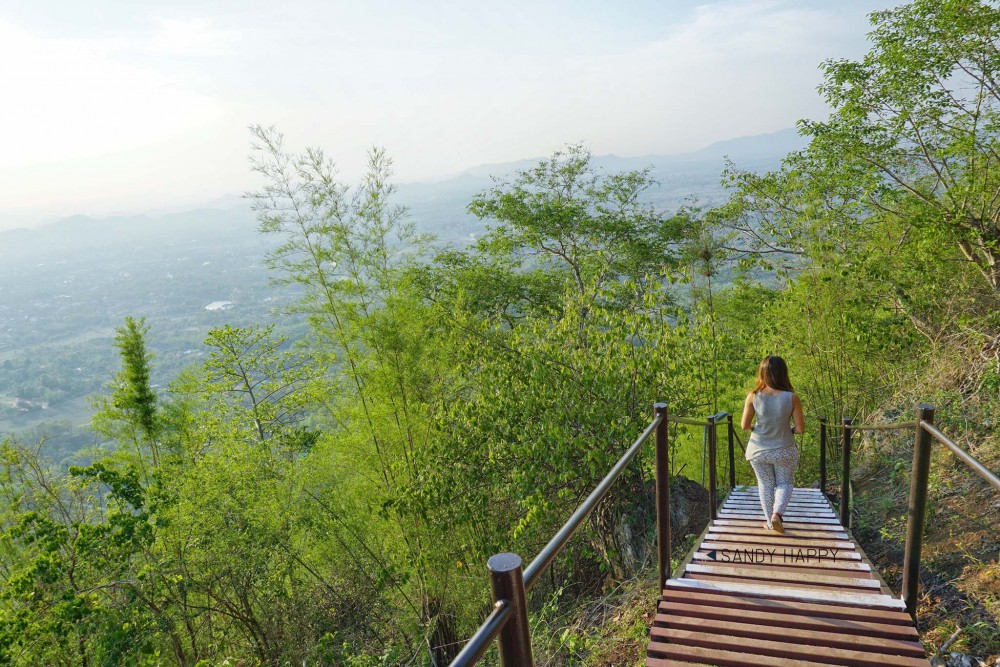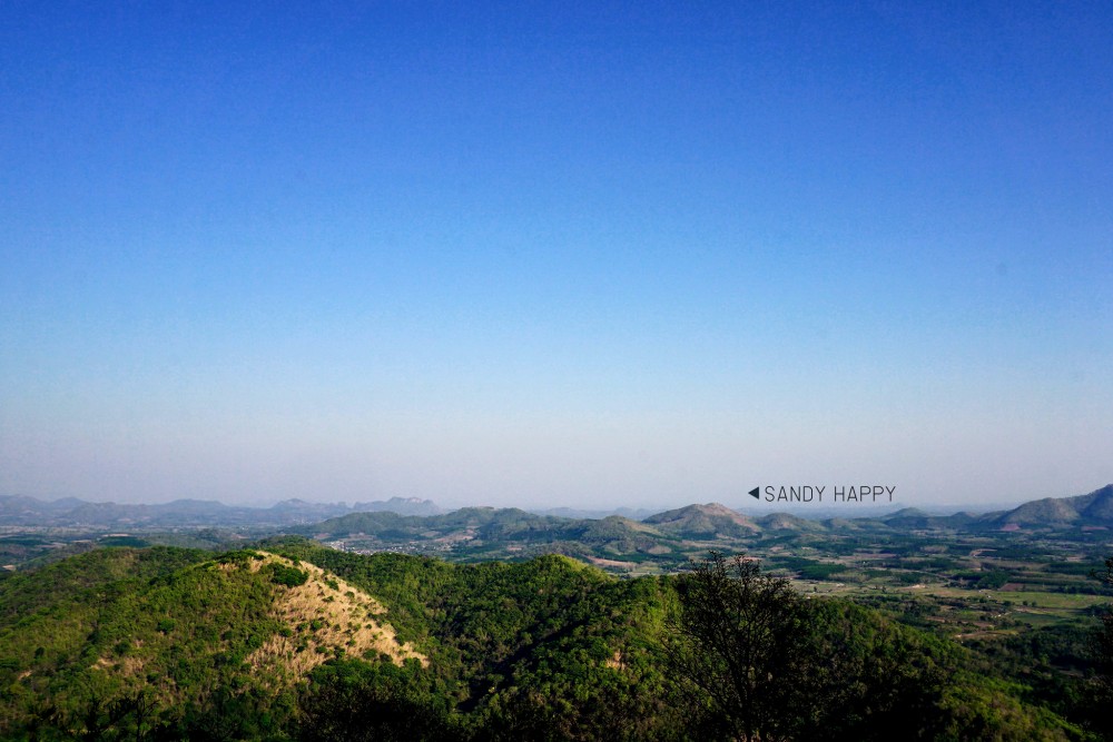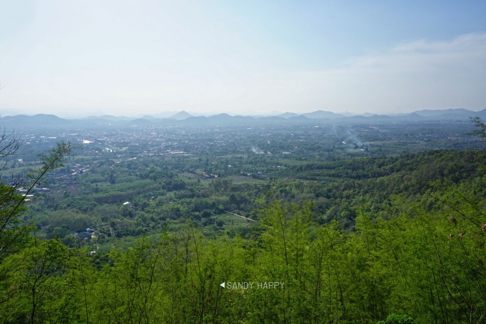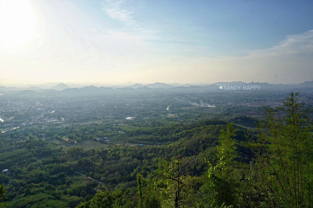 ภูนี้สูงไม่มาก ดังนั้นมองลงไปก็เห็นหลังคาบ้าน เห็นรถวิ่งได้อยู่ และก็ยังเห็นทิวเขาที่ล้อมรอบตัวเมืองเลยอยู่รอบทิศทาง
