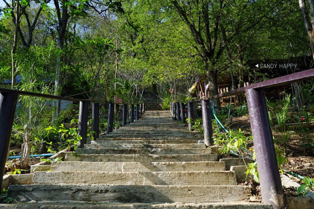 ตลอดข้างทาง มีจุดให้นั่งพักได้เป็นระยะ วิวระหว่างทางนั้นไม่ค่อยเห็น เพราะเป็นทางเดินที่มีต้นไม้ข้างทางสูง เราเลยไม่ถึงกับเดินไปดูวิวไปชิลๆได้ ส่วนใหญ่จะตั้งหน้าตั้งตาเดินมองขั้นบันไดไปเรื่อยๆ เพราะกลัวเดินสะดุดบันได ตกเขาไปซะก่อน