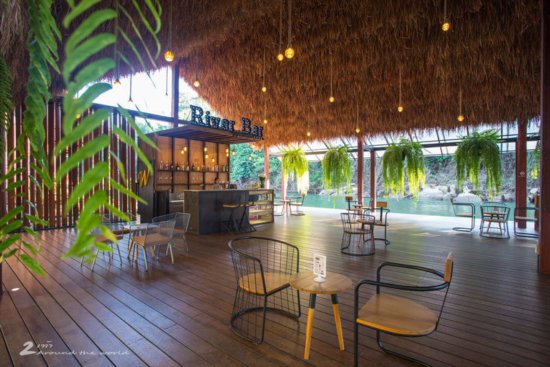 บริเวณนี้คือ River Bar ซึ่งเป็นจุดรวมพลของผู้ที่ต้องการทำกิจกรรมที่ทางรีสอร์ทได้จัดเตรียมไว้ให้ฟรี นั่นคือการล่องแพกระโดดน้ำลอยคอ โดยจะมีทั้งหมด 3 รอบ คือรอบ 09.00 น., 16.00 น. และ 17.00 น ใช้เวลารอบละ 1 ชั่วโมงครับ