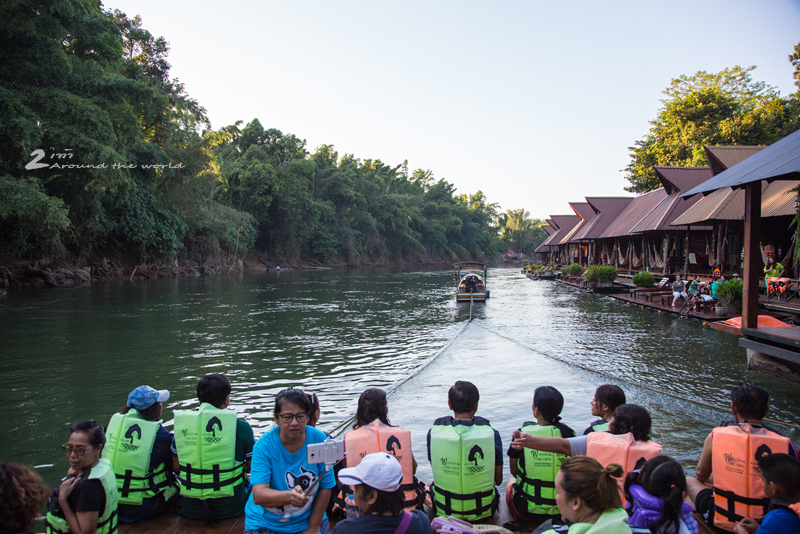 หลังจากเก็บข้าวของเข้าห้องเรียบร้อย มีเวลาพักผ่อนยืดเส้นยืดสาย เปลี่ยนเสื้อผ้ากันสักนิด ก็ถึงเวลาได้ออกไปทำกิจกรรมร่วมกันแล้ว คณะของผมได้ร่วมกิจกรรมในรอบ 17.00 น. เรือจะลากแพทวนกระแสน้ำขึ้นไป เมื่อถึงจุดหนึ่งจะกลับลำ และจะปล่อยให้แขกได้กระโดดน้ำลอยคอตามกระแสน้ำมาเรื่อยๆ ผ่านหน้าที่พัก และแพจะไปจอดรอรับอยู่ที่ด้านท้ายน้ำ ห่างจากที่พักสักประมาณ 4-500 เมตรได้ครับ