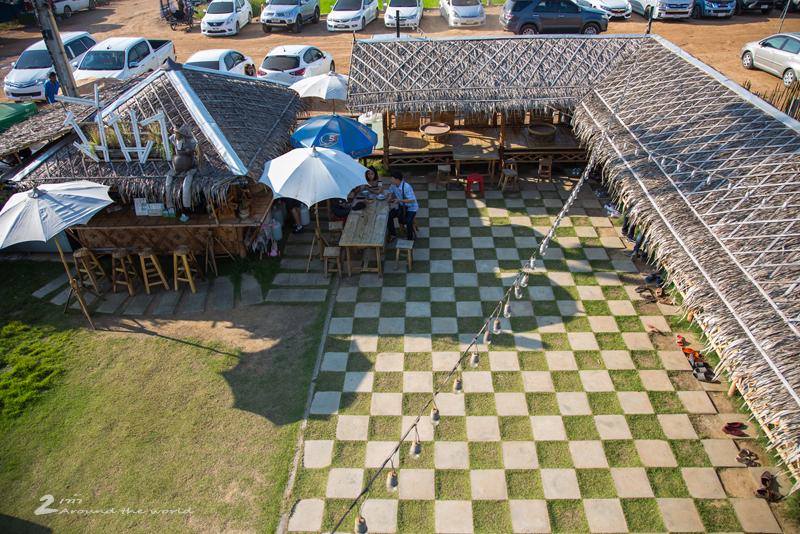 บรรยากาศโดยรอบ มองเห็นสนามหญ้าสีเขียวในอ้อมกอดของขุนเขา มาช่วงกลางวันแดดเปรี้ยงๆ แบบนี้ บอกเลยว่าแสบตัวมากๆ ผมว่าที่นี่เหมาะกับมานั่งชิลล์กินบรรยากาศช่วงเย็นๆ คงจะโรแมนติกน่าดู